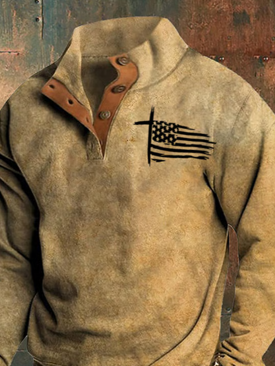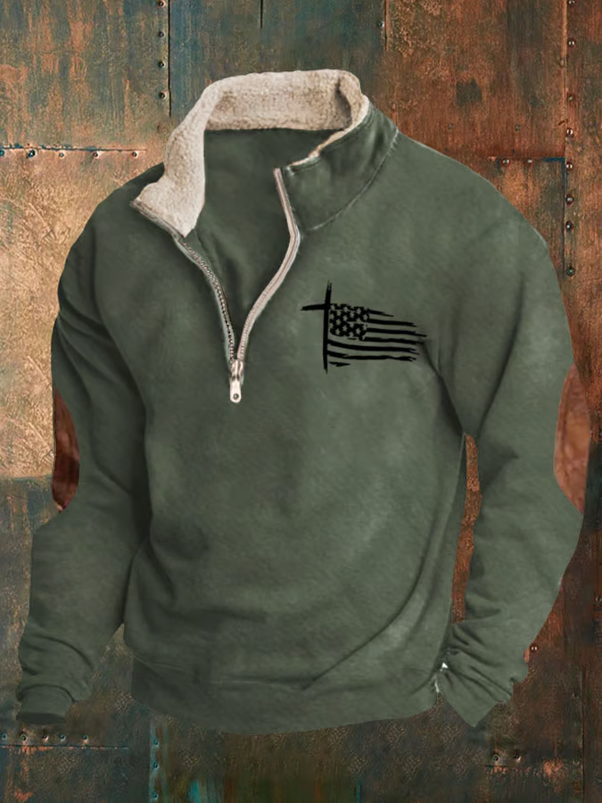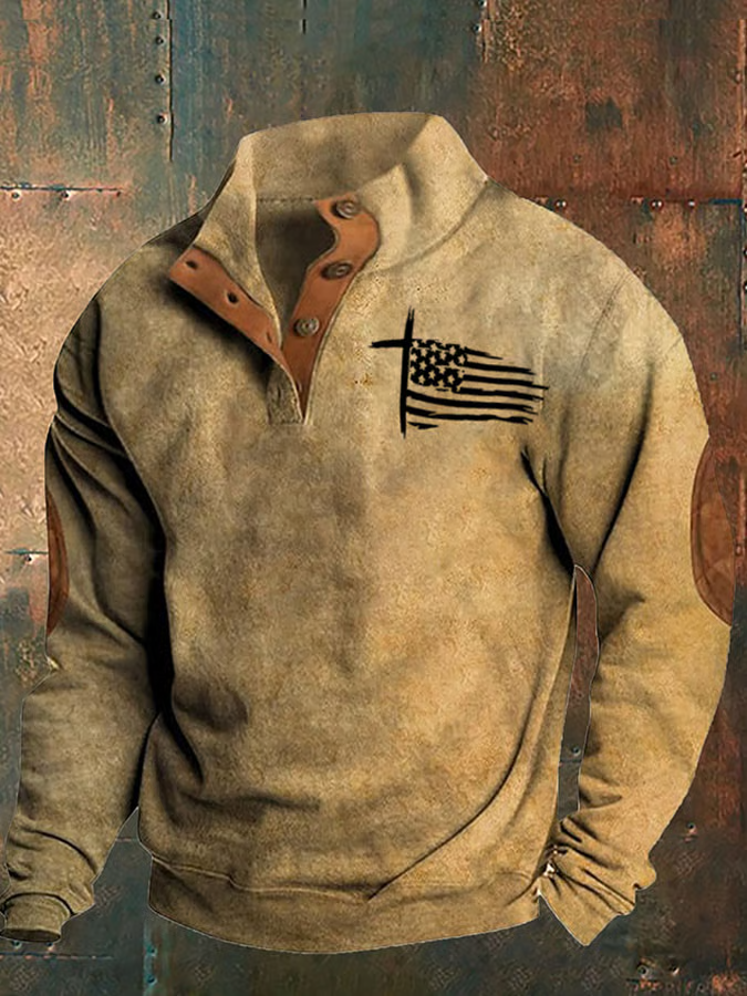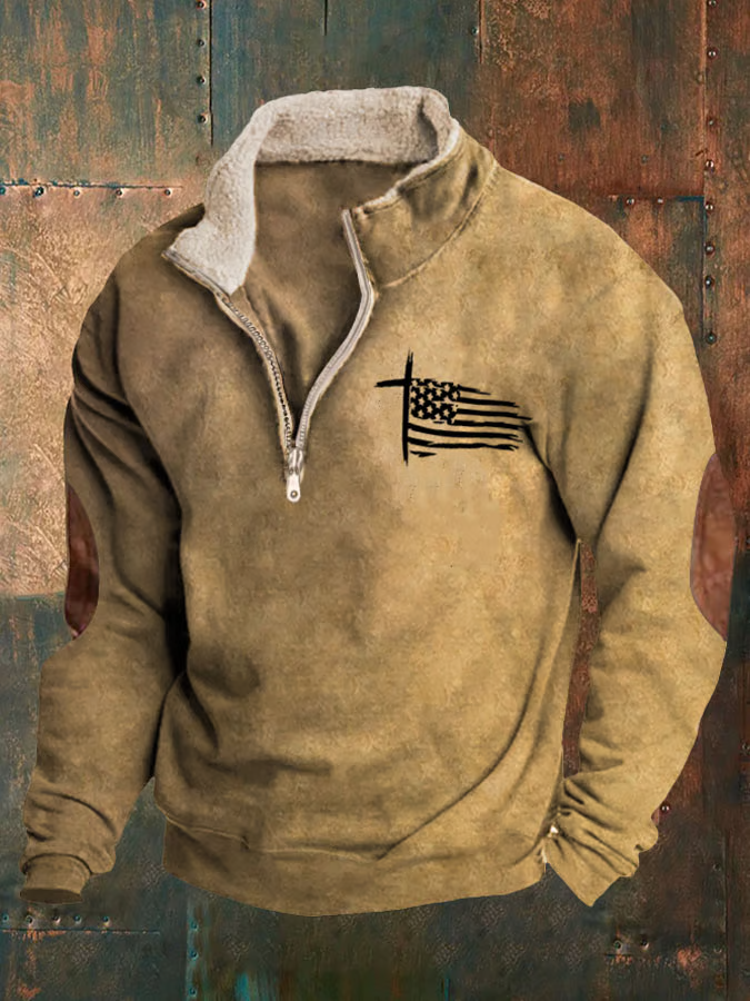 Men's Western Vintage Faith Flag Print Half Collar Sweatshirt