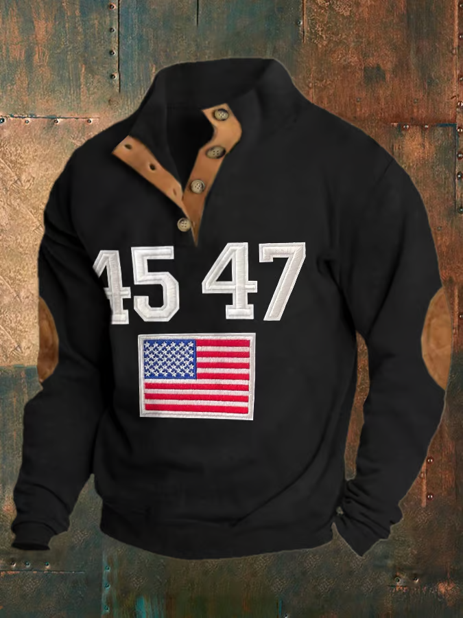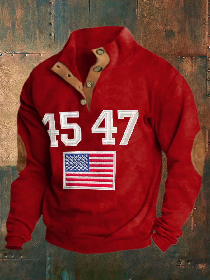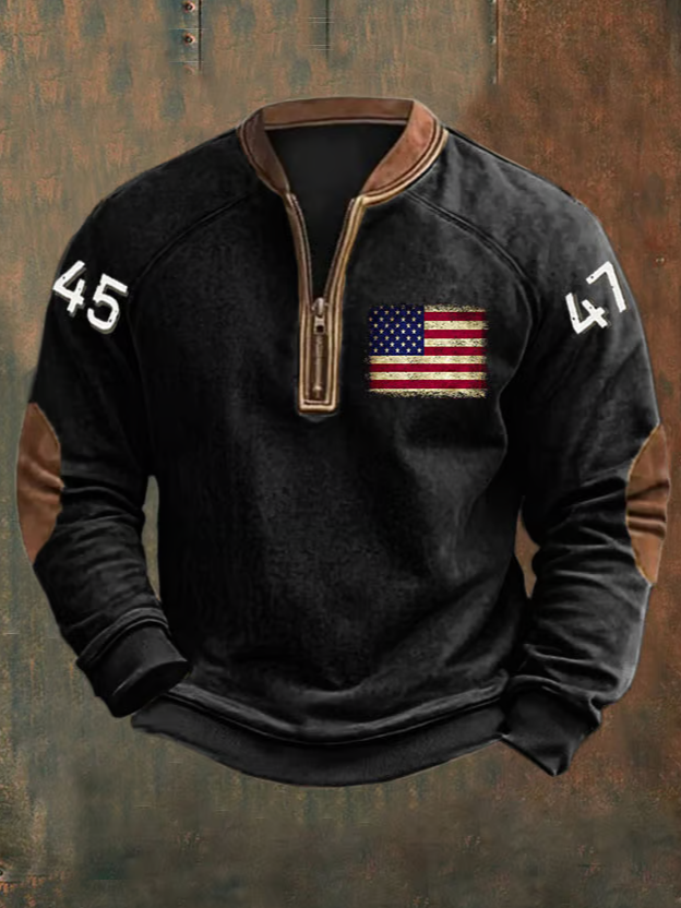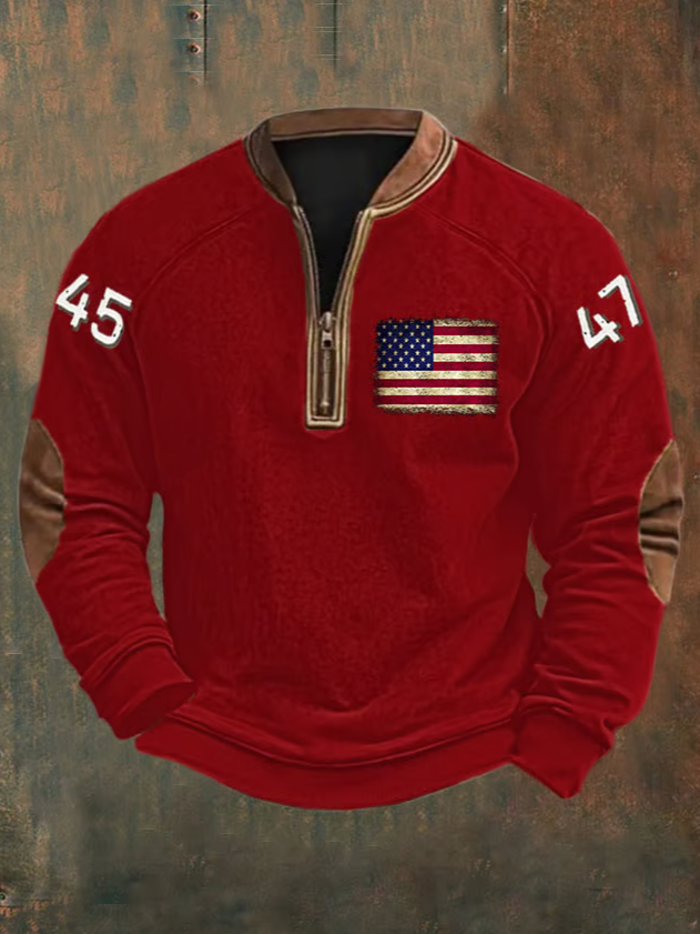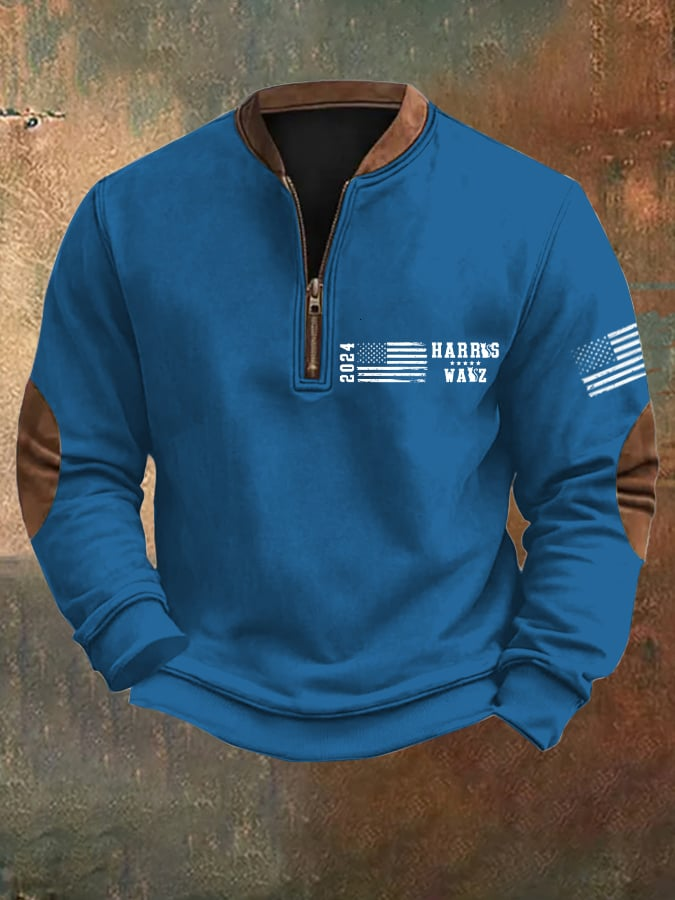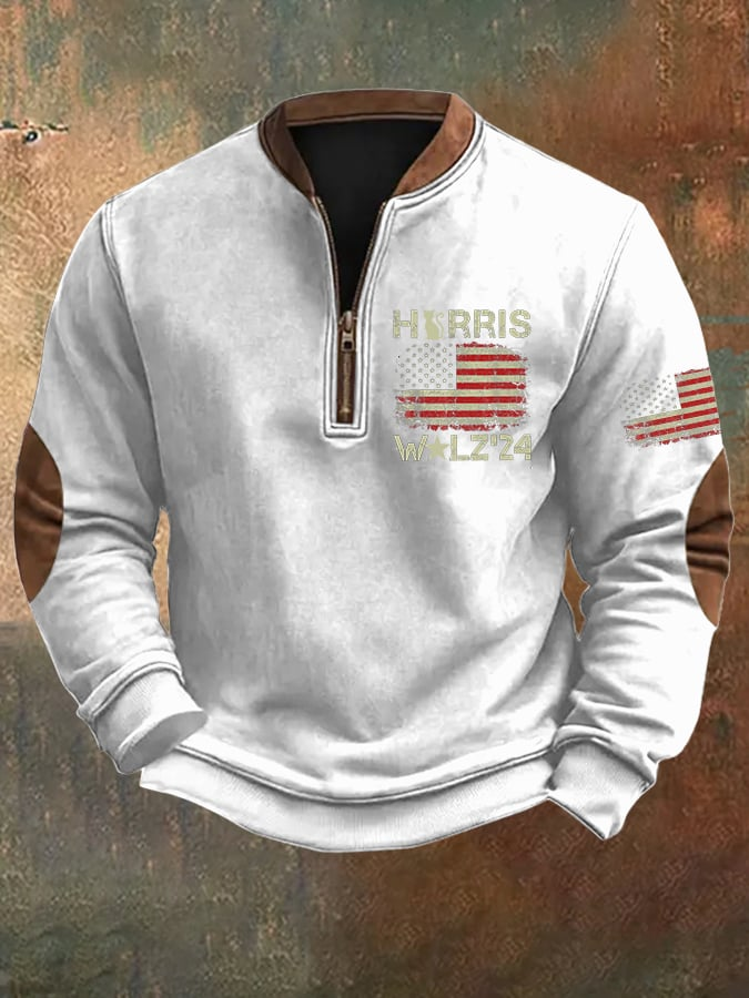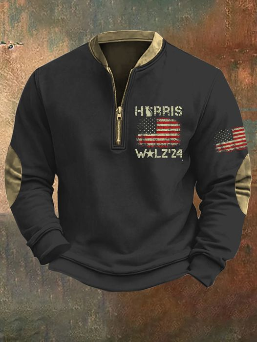 Men's Vintage Flag Print Vote Vintage Half Open Collar Sweatshirt