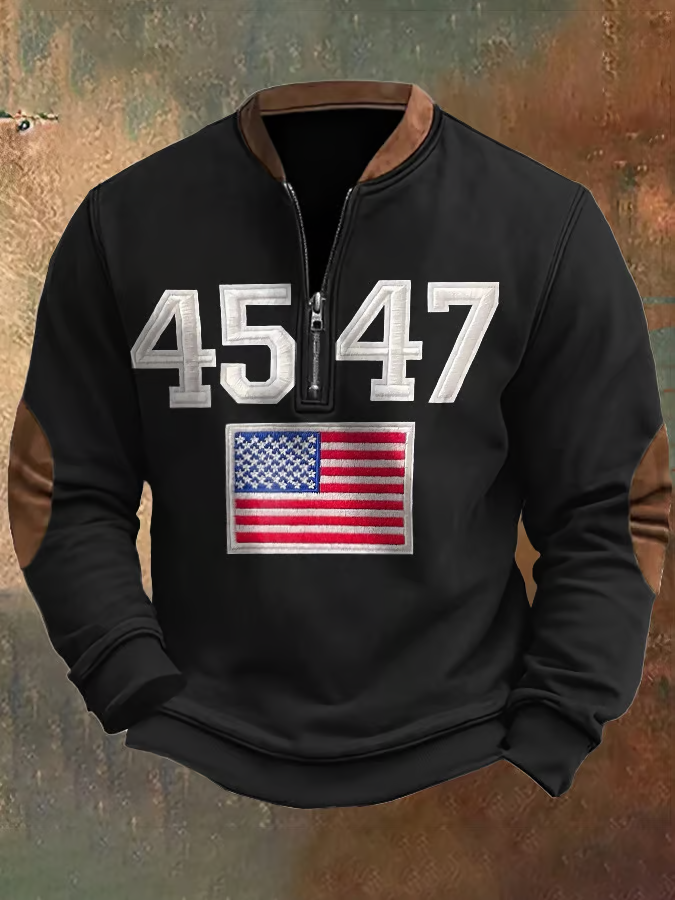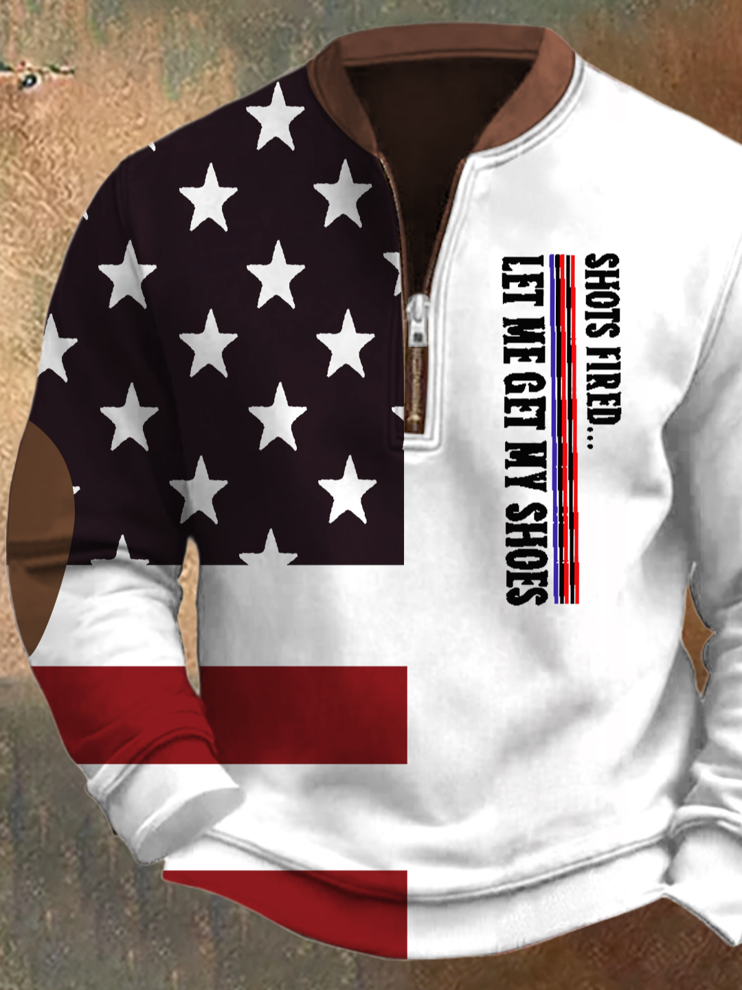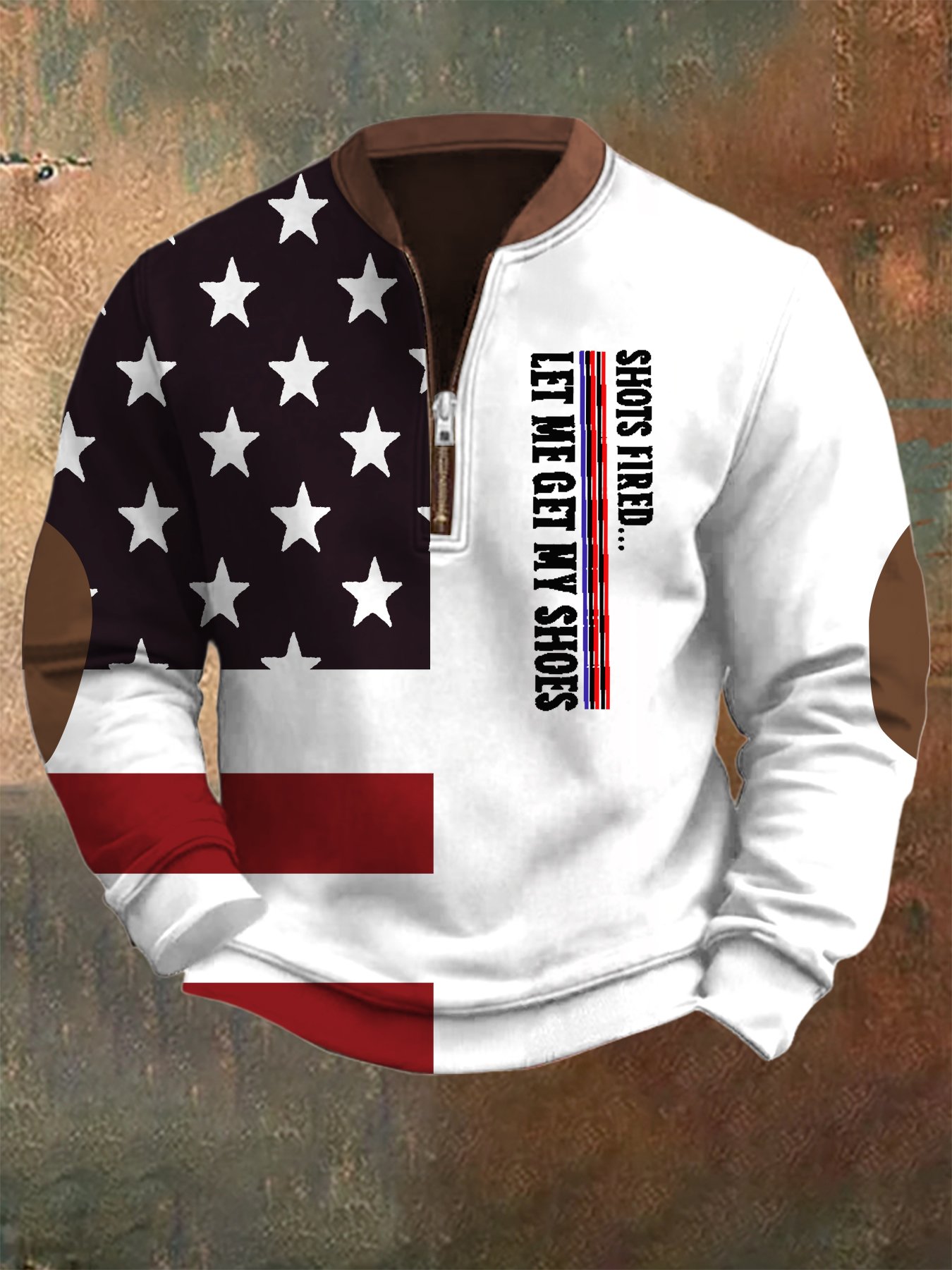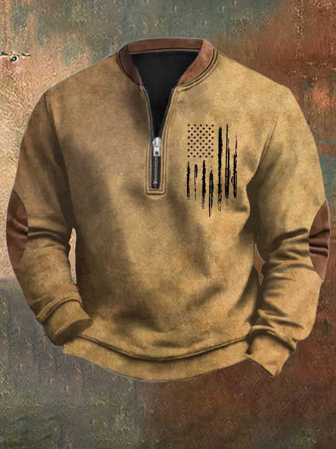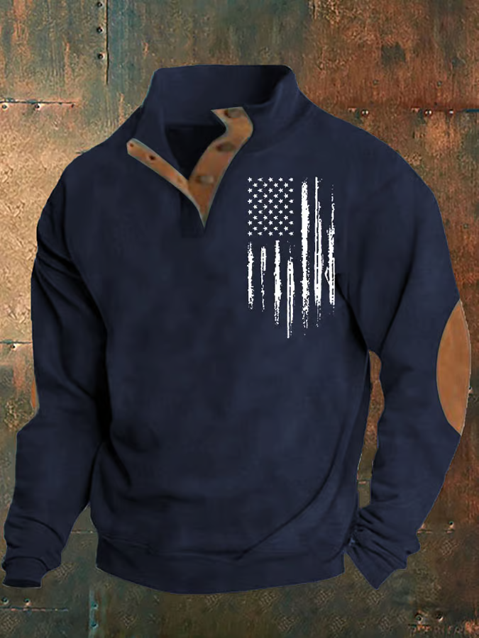 Men's American Flag Combat Casual Half Collar Sweatshirt