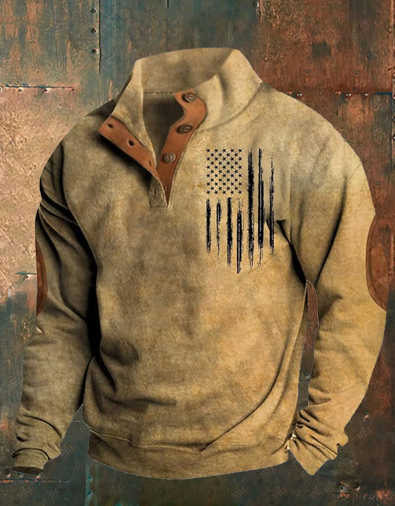 Men's Vintage Flag Print Button-Down Sweatshirt