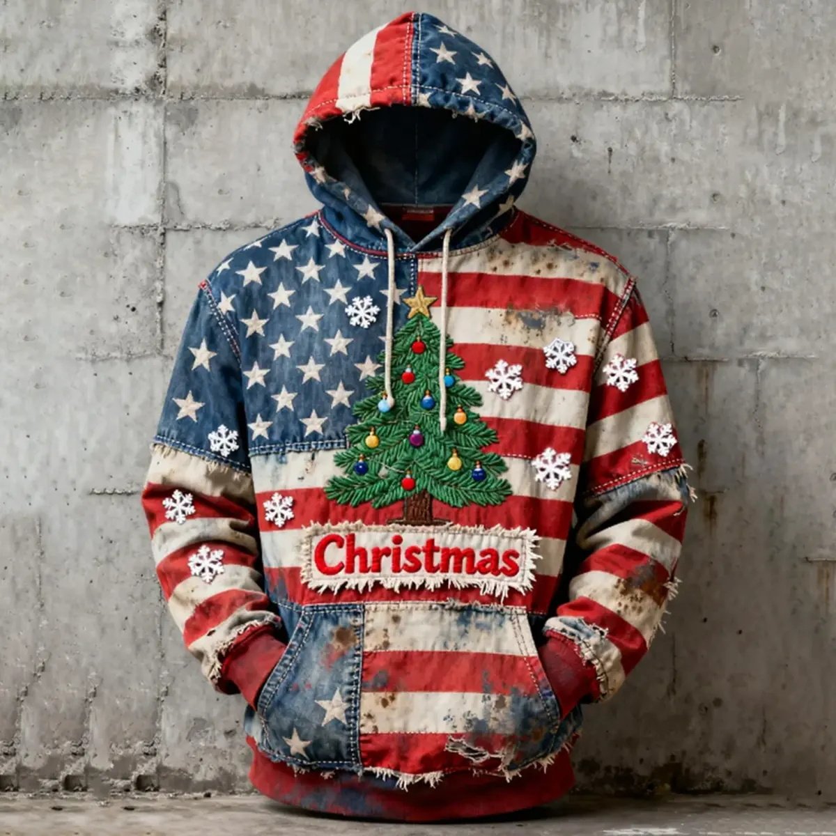 Men's Retro Christmas Distressed American Flag 3D Print Ugly Hoodie