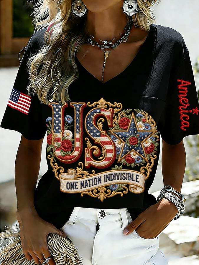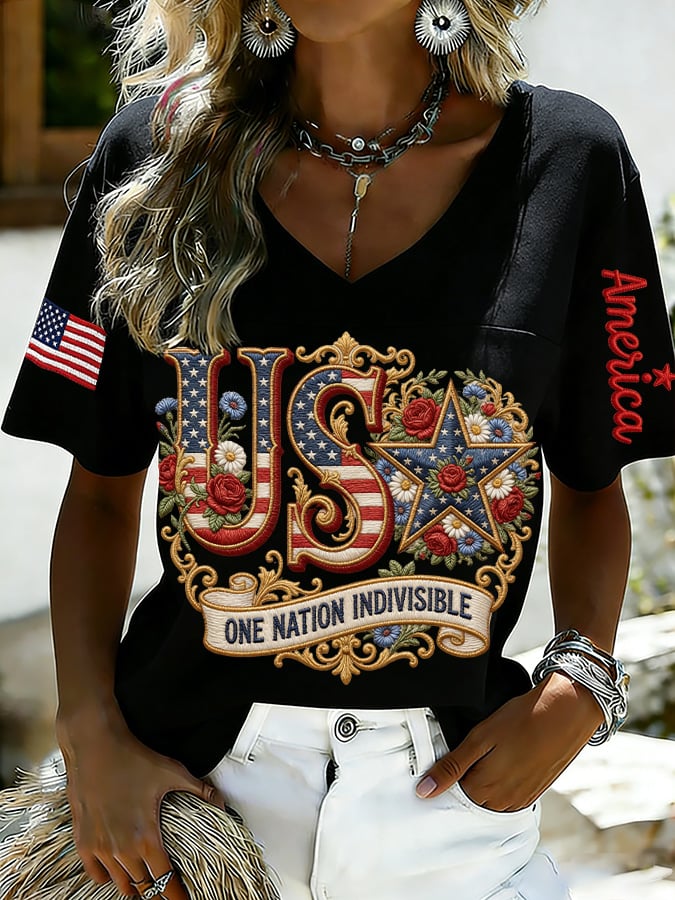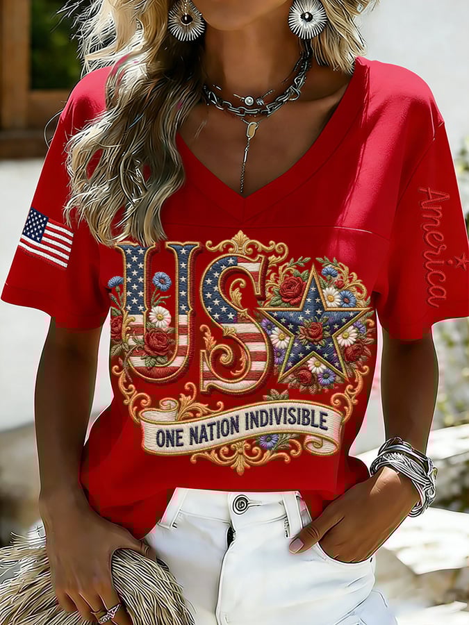 Women's 250th Anniversary Print V-Neck Top