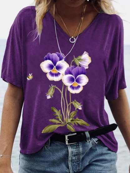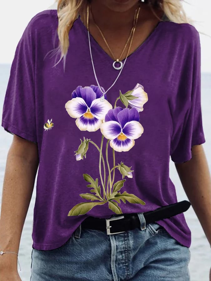 Women's Alzheimer's Awareness Floral Print T-Shirt