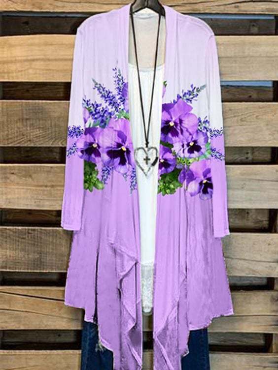 Women's Purple Flower Alzheimer's Awareness Support Print Casual Cardigan