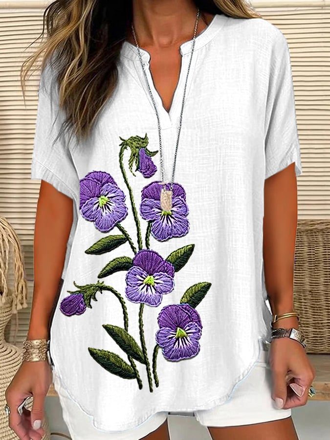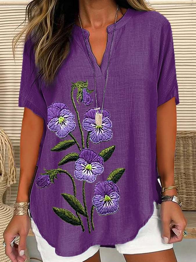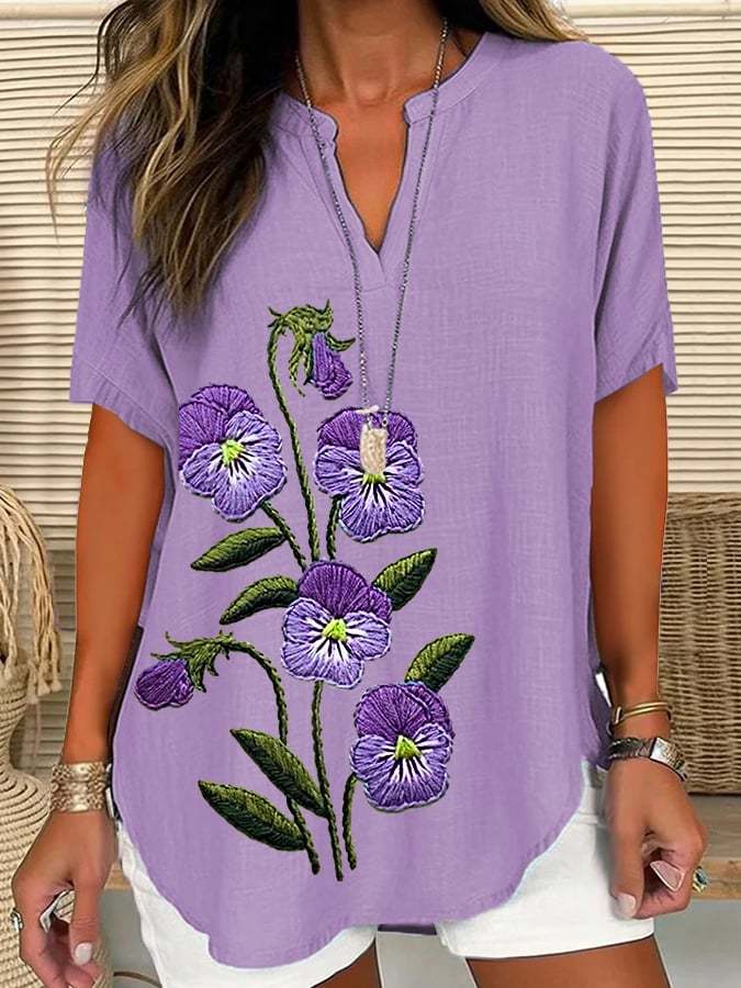 Women's Purple Flower Alzheimer's Awareness Support Short Sleeve Shirt
