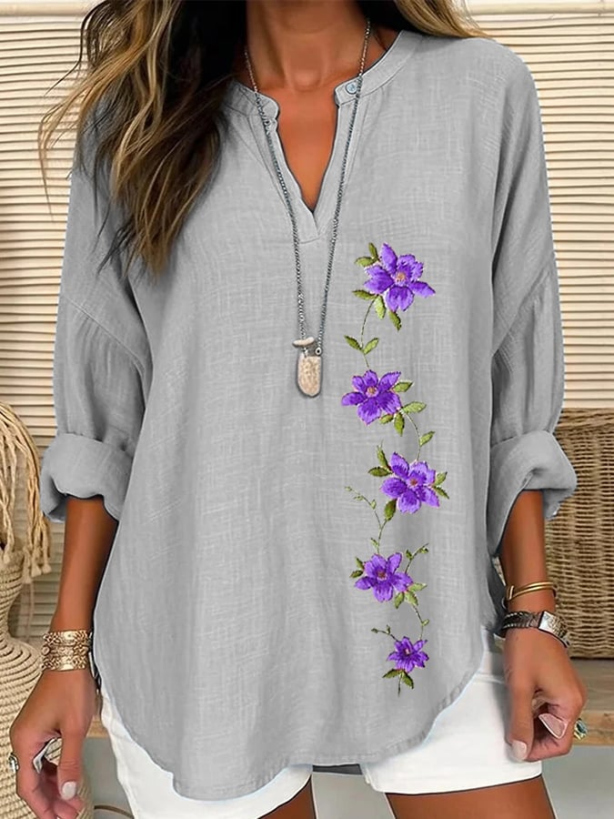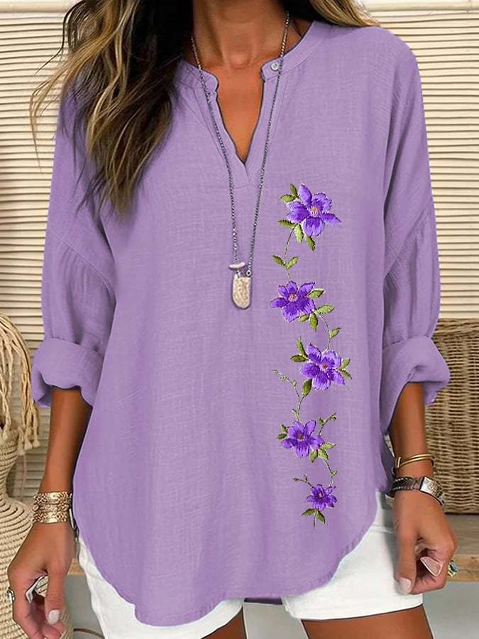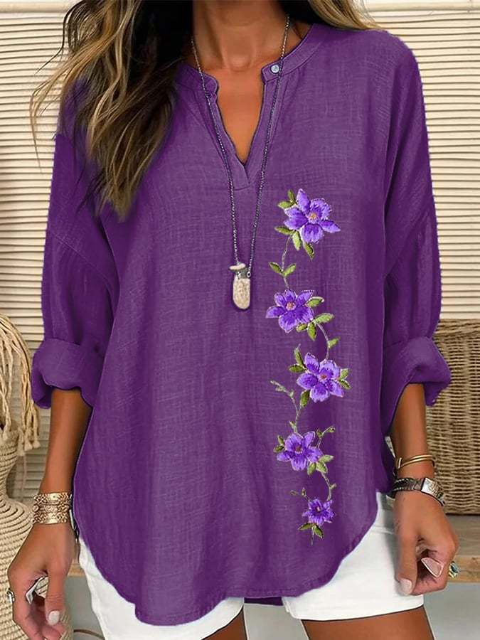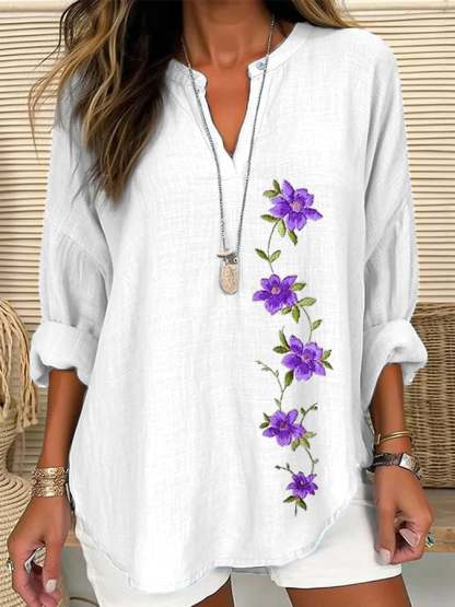 Women's Purple Flower Print Casual Shirt