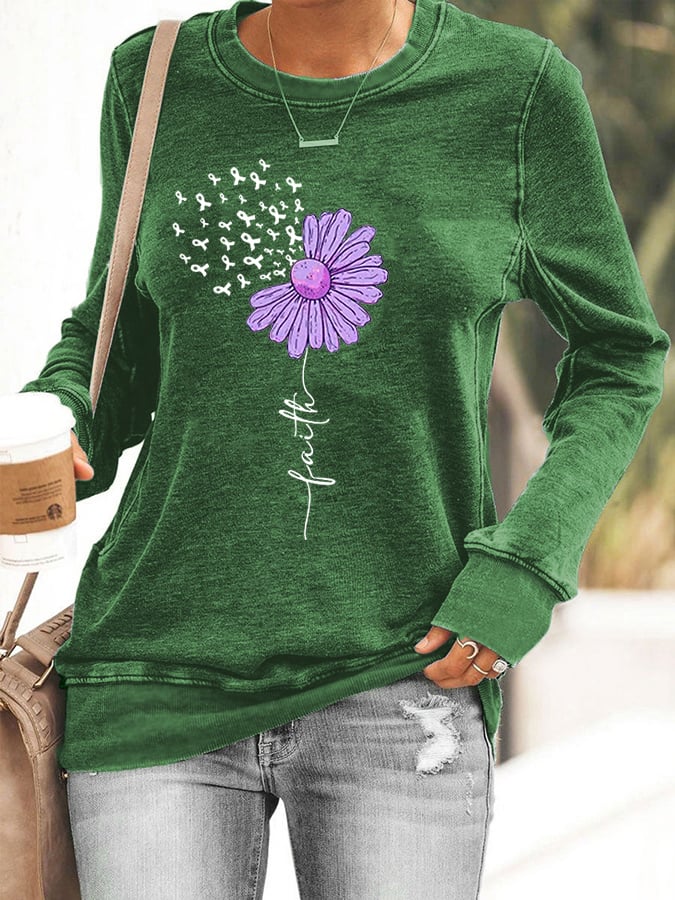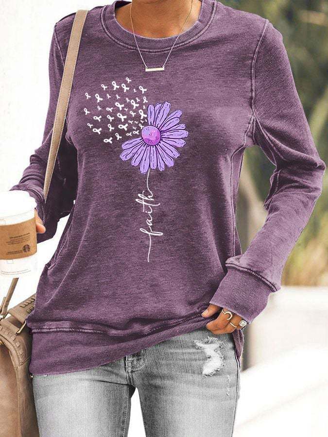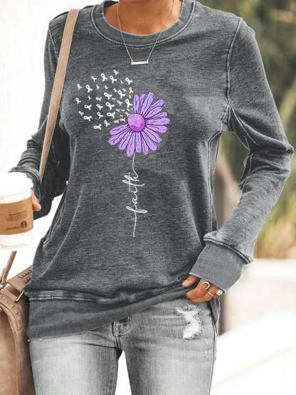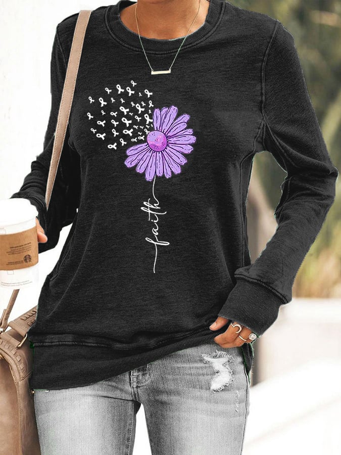 Women's Sunflower Purple Ribbon Faith Alzheimer's Awareness Warrior Supporter Sweatshirt