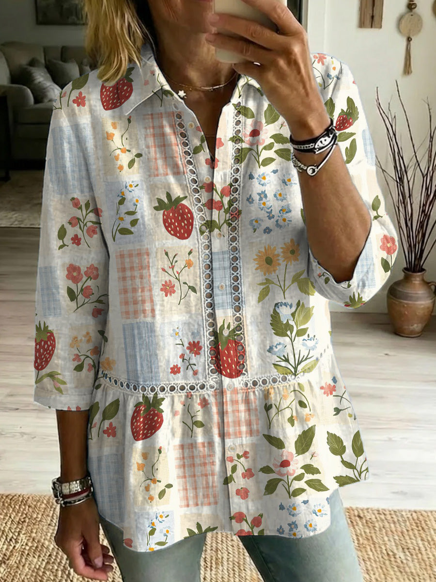 Women's Grass Decorative Pattern Linen And Cotton Shirt