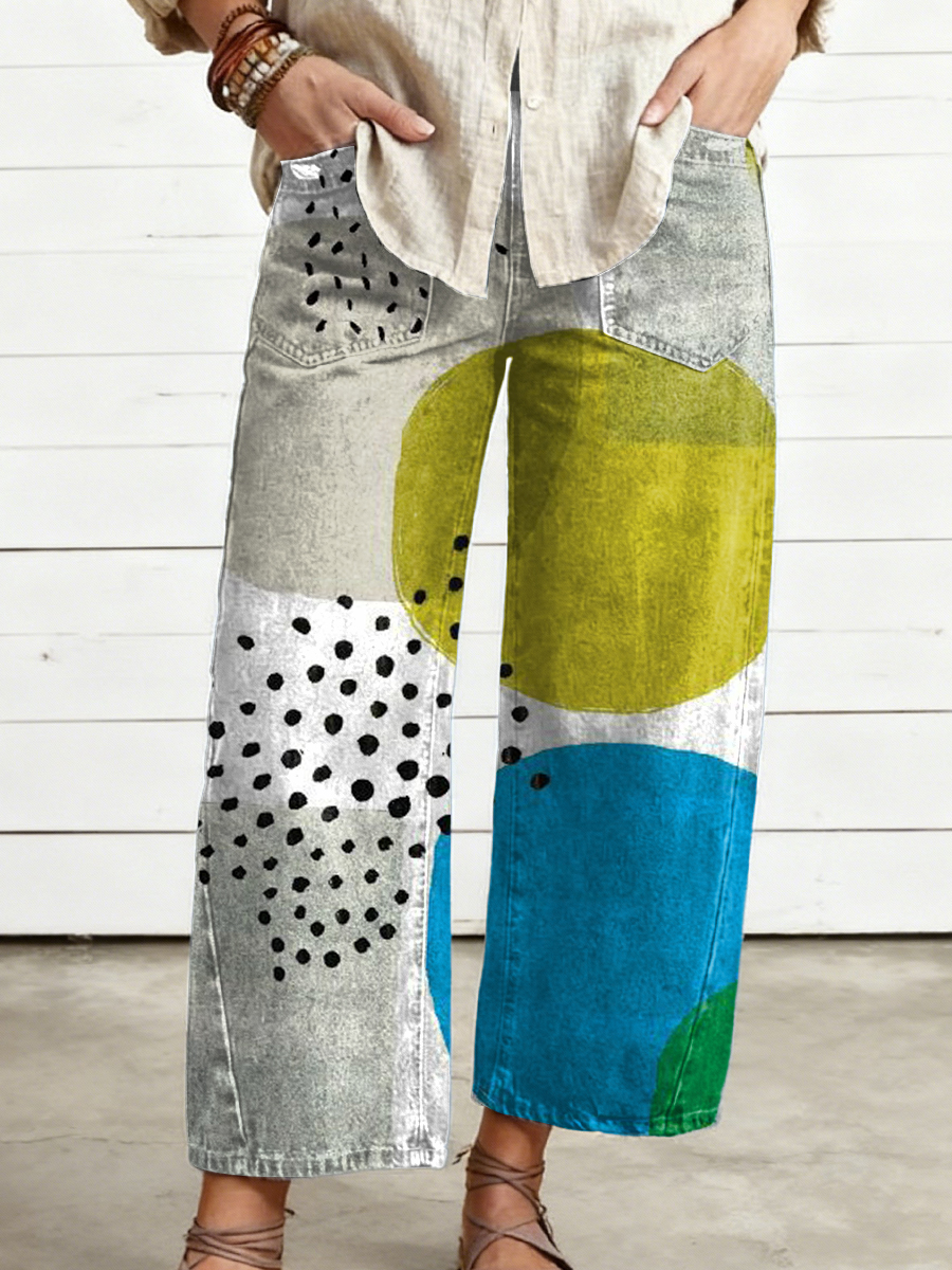 Women's Geometry Art Print Casual Cotton Trousers With Pockets