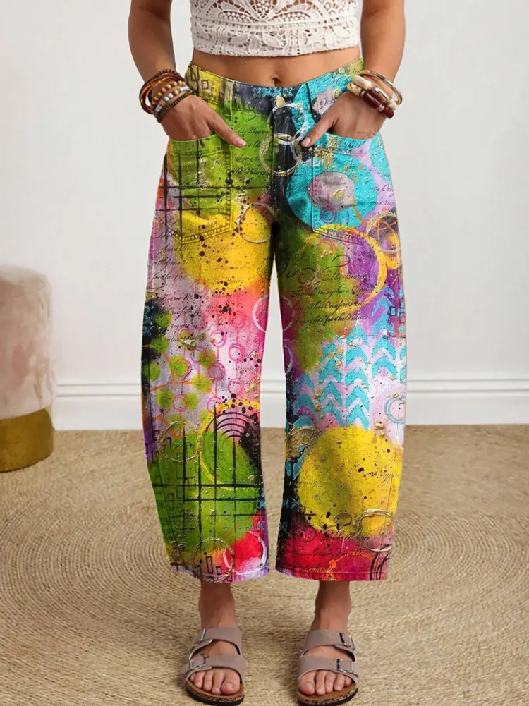 Women's Colorful Bohemian Paisley Art Print Casual Pocket Cotton Pants