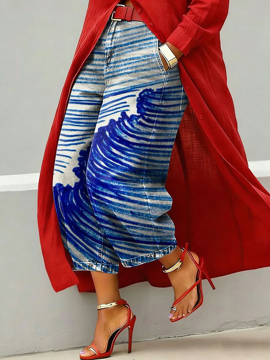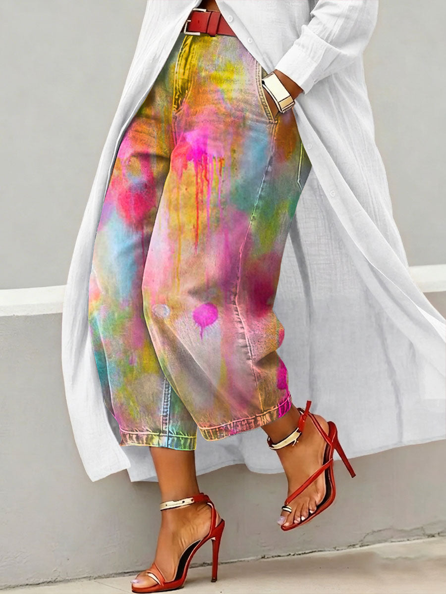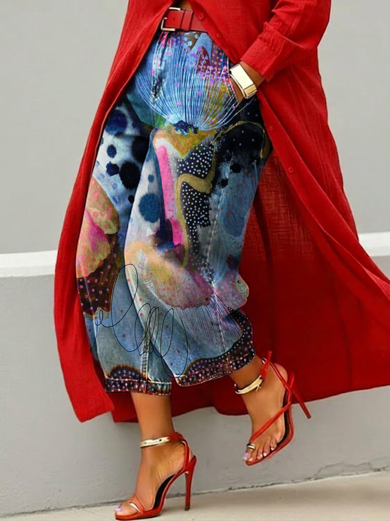 Women's Vintage Colorful Art Print Casual Jeans