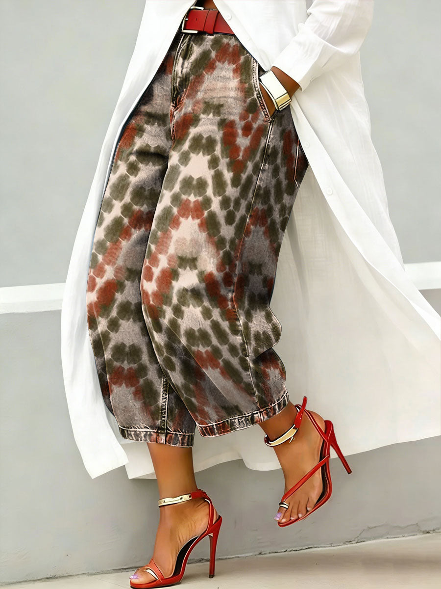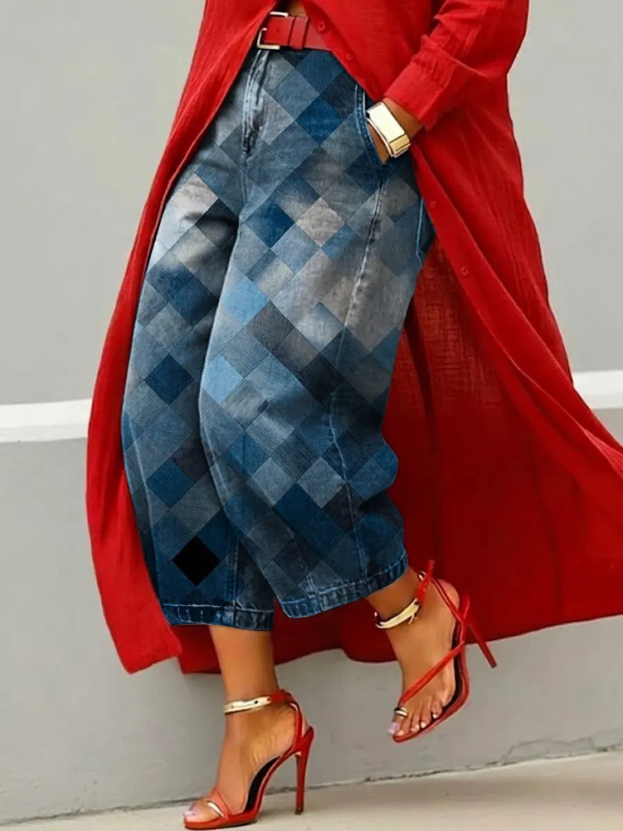 Women's Vintage Gradient Rhombus Print Casual Jeans