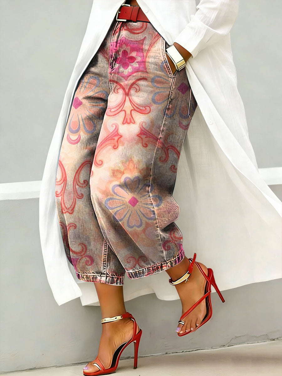 Women's Retro Ethnic Pattern Art Print Casual Jeans