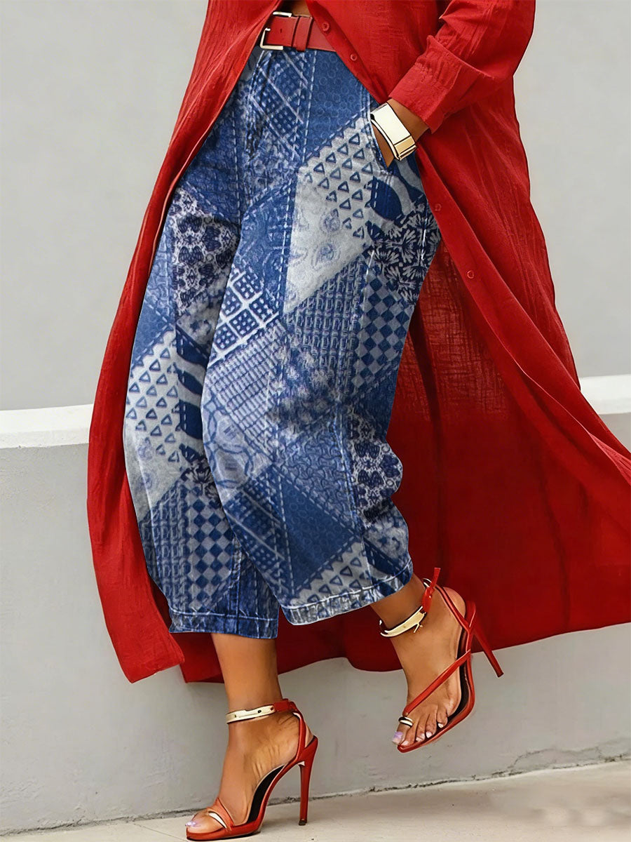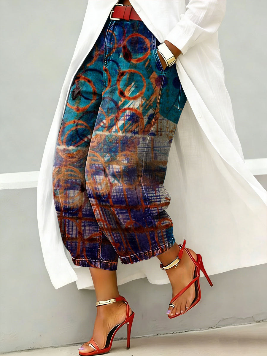 Women's Retro Ethnic Pattern Art Print Casual Jeans