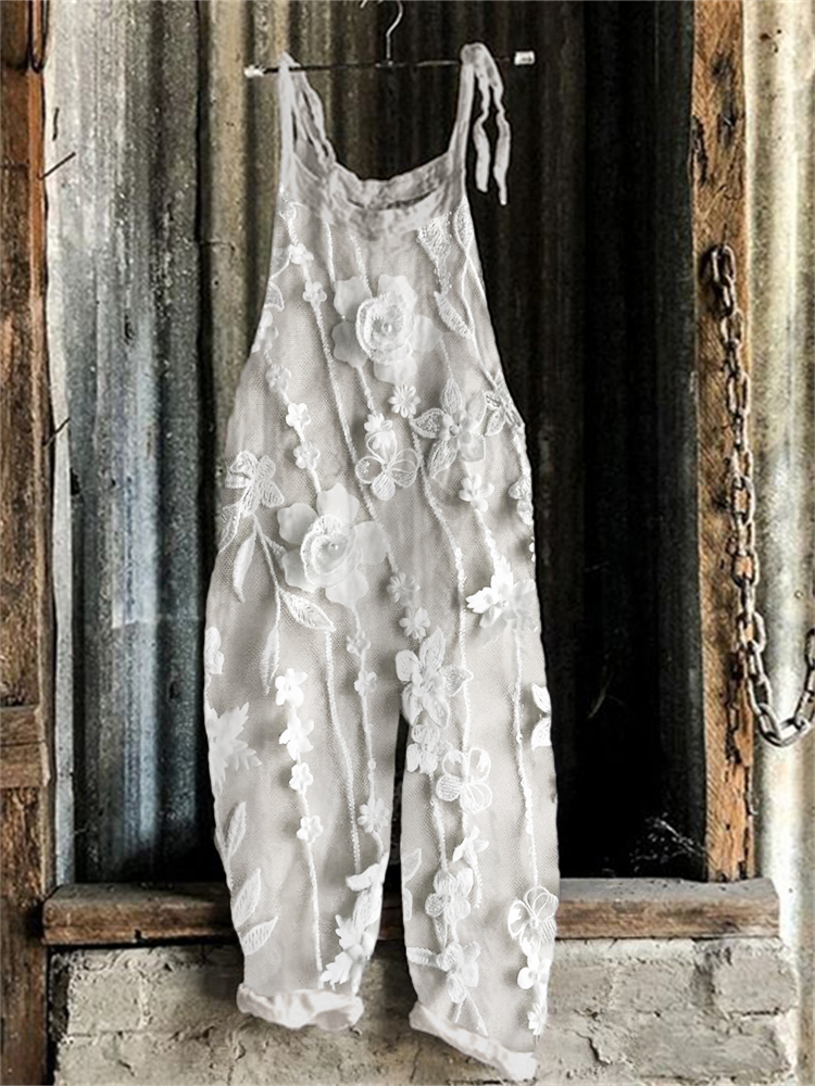 Vintage Gorgeous Flowers Graphic Casual Loose Jumpsuit