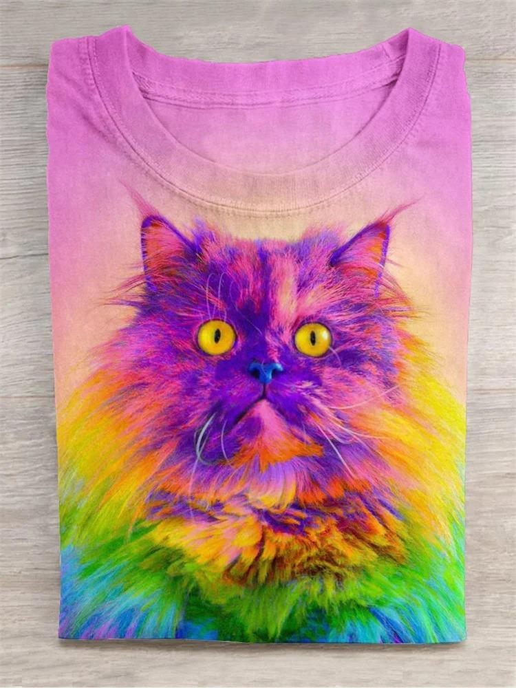 Cute Cat Art Print Casual Short Sleeve T-shirt