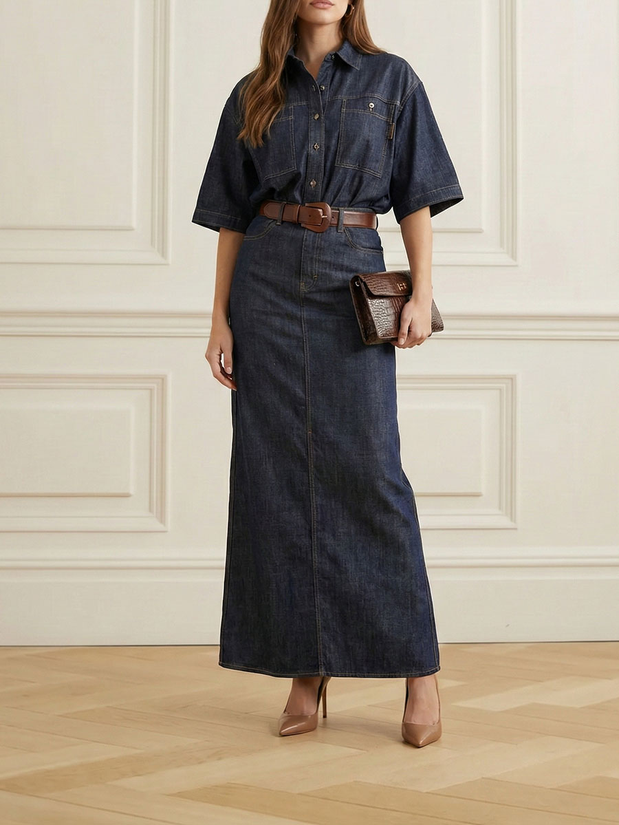 Soft Zipper Long Sleeves Skinny Lapel Midi Dresses