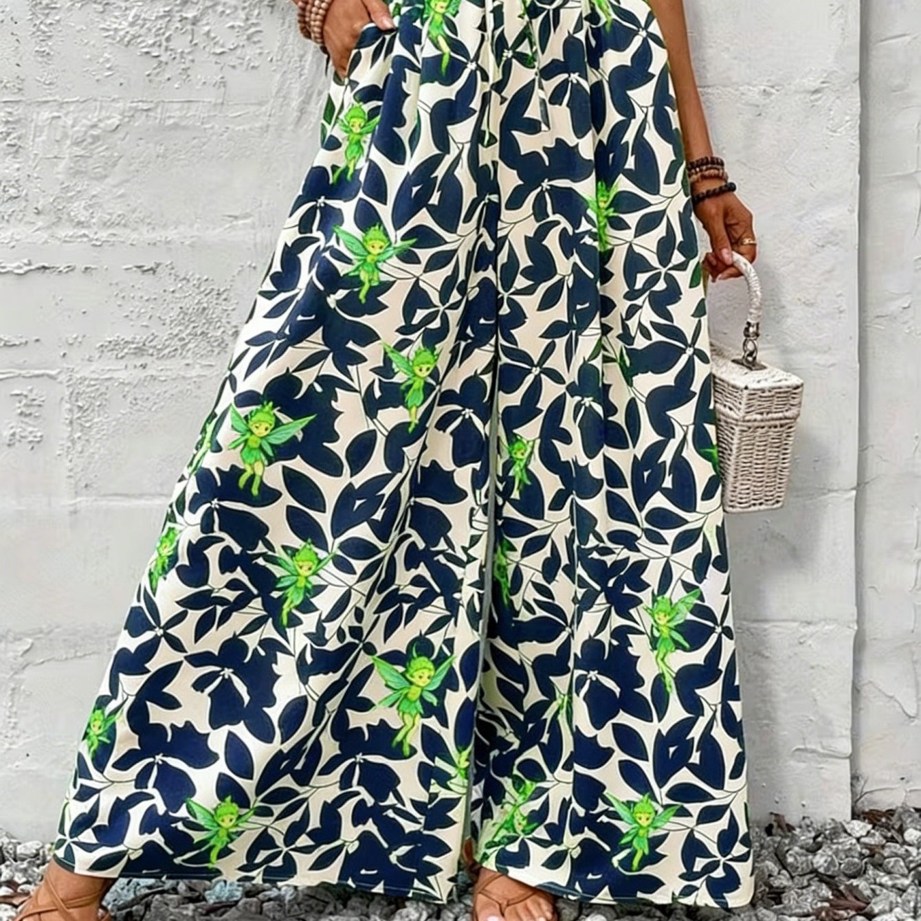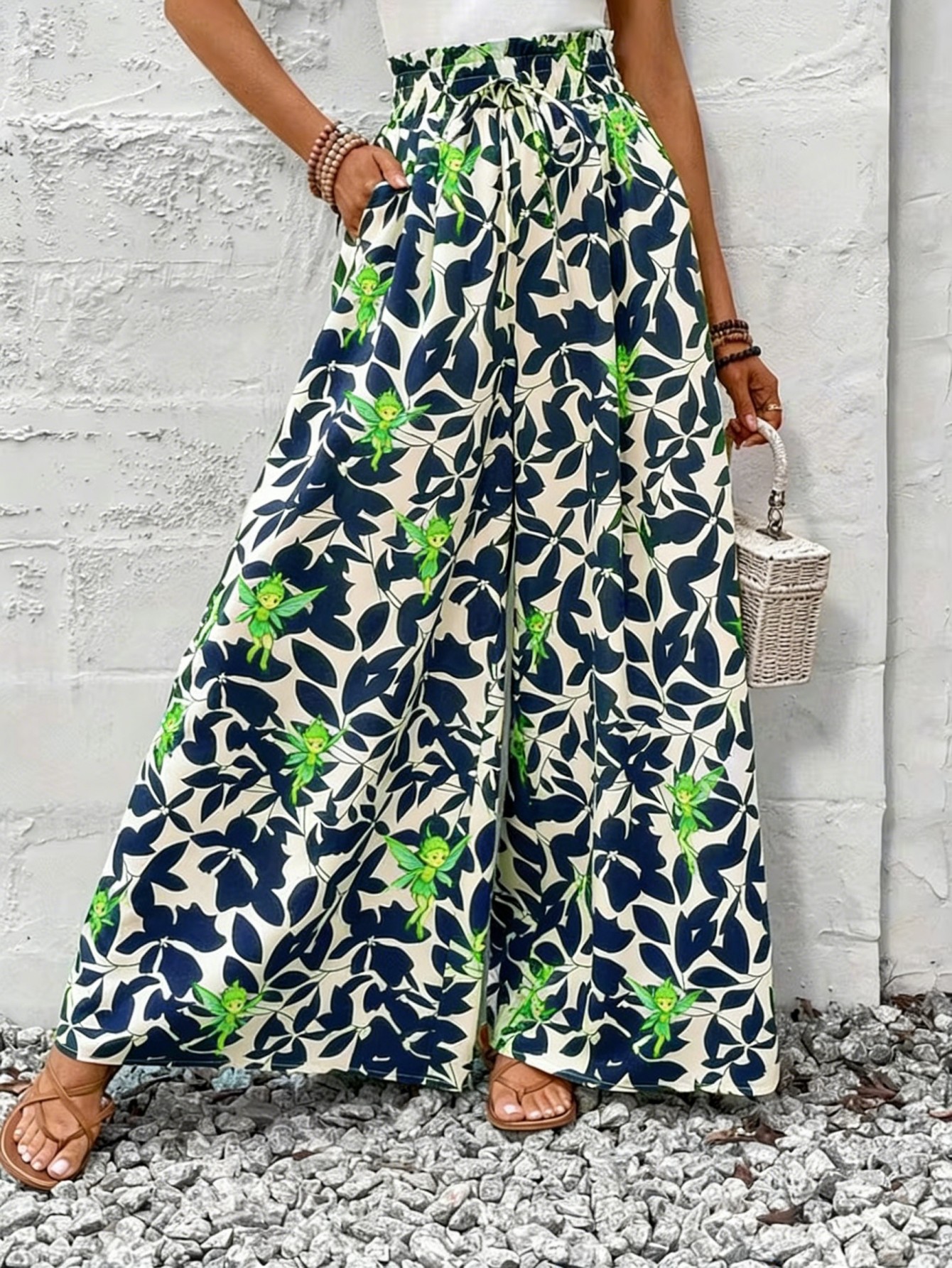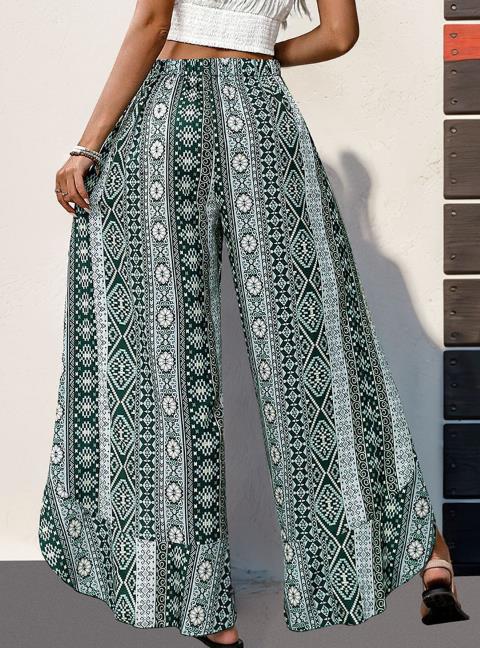Spring Summer Printed Ruffle Wide-Leg Split Pants ✨