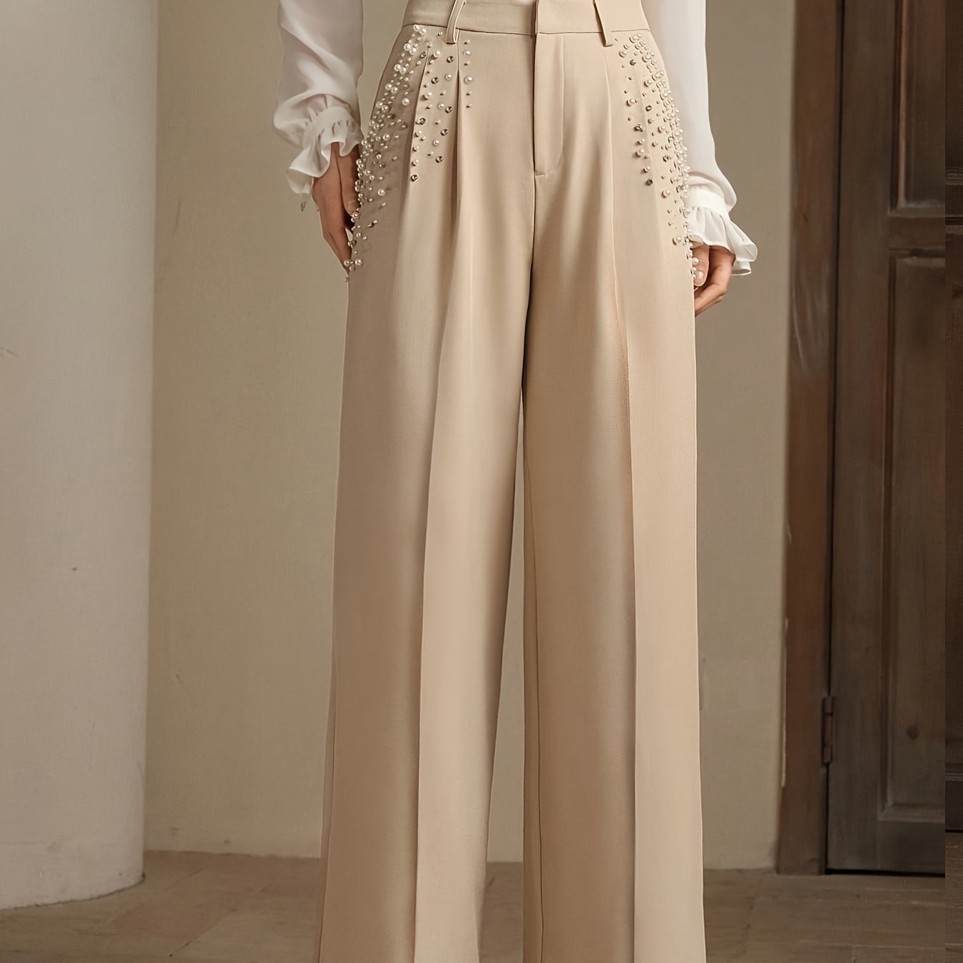 💎Women’s Modern Commuter Office Pants | Pearl Rhinestone Embellished Elegant Casual Workwear