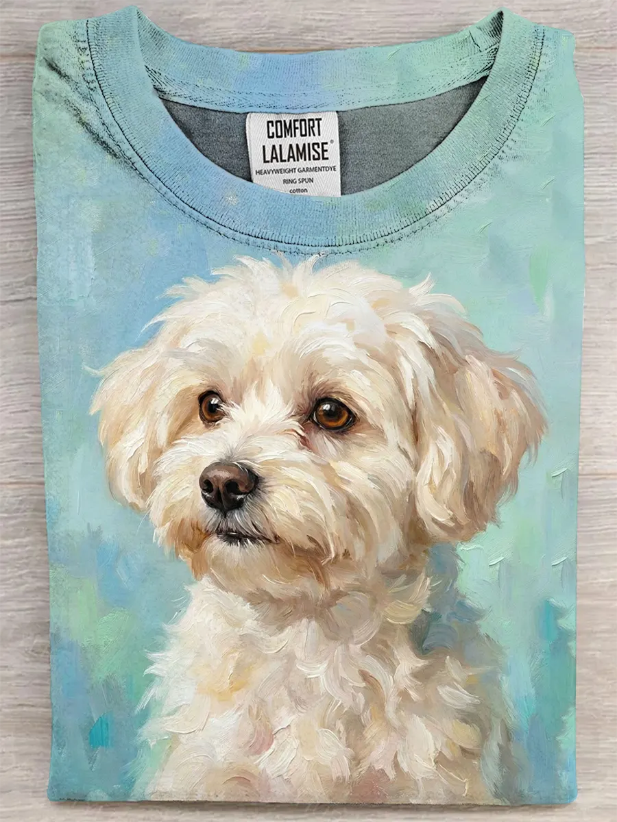 Funny Cute Dog Art Print Casual Cotton Short Sleeve T-shirt