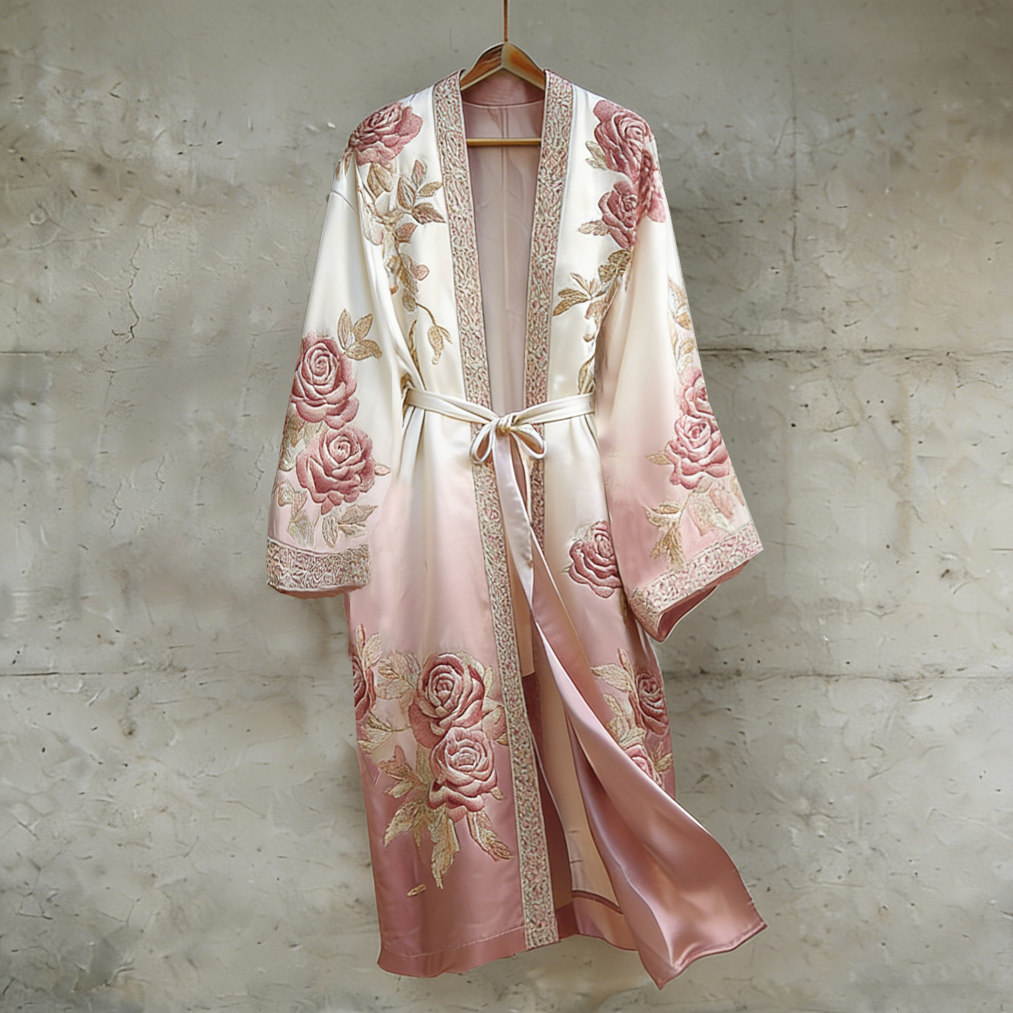 Women's Retro Rose Gradient Pattern Smooth Comfy Kimono