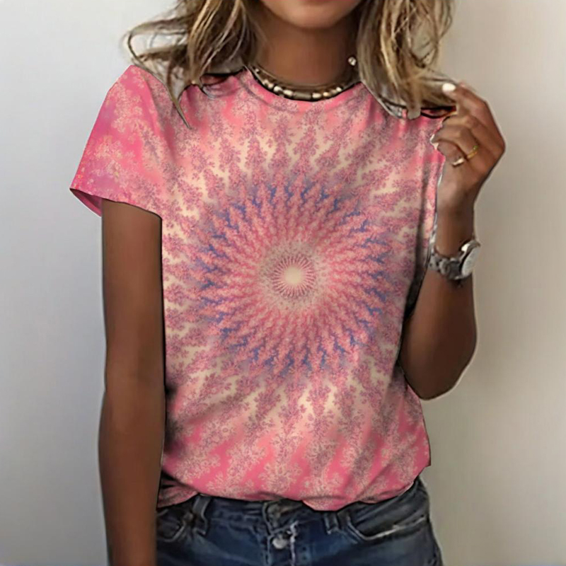 Women's Casual Retro Breast Cancer Awareness Lotus T-shirt