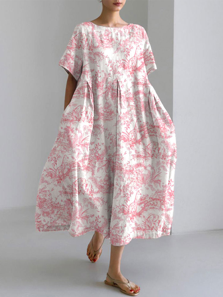 Women's Casual Pink Awareness Plants And Animals Printed Dress