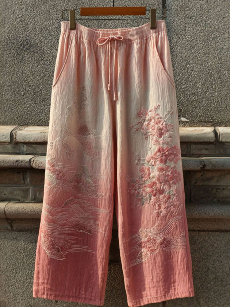 Women's Retro Floral Art Print Comfortable Casual Pants