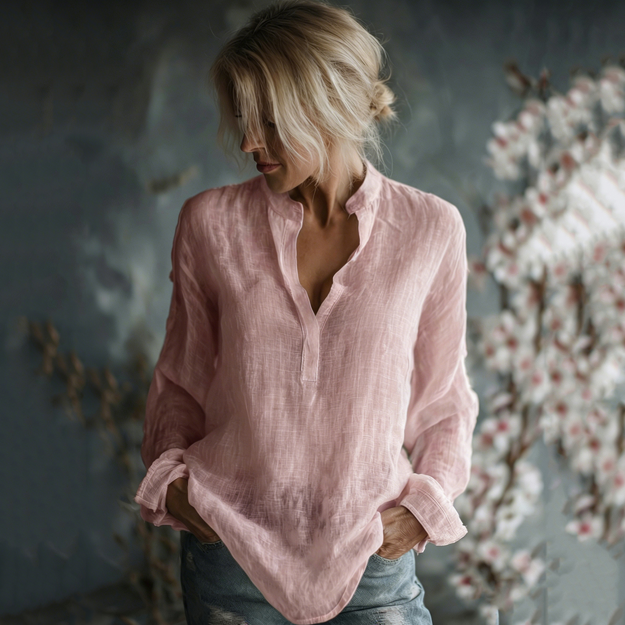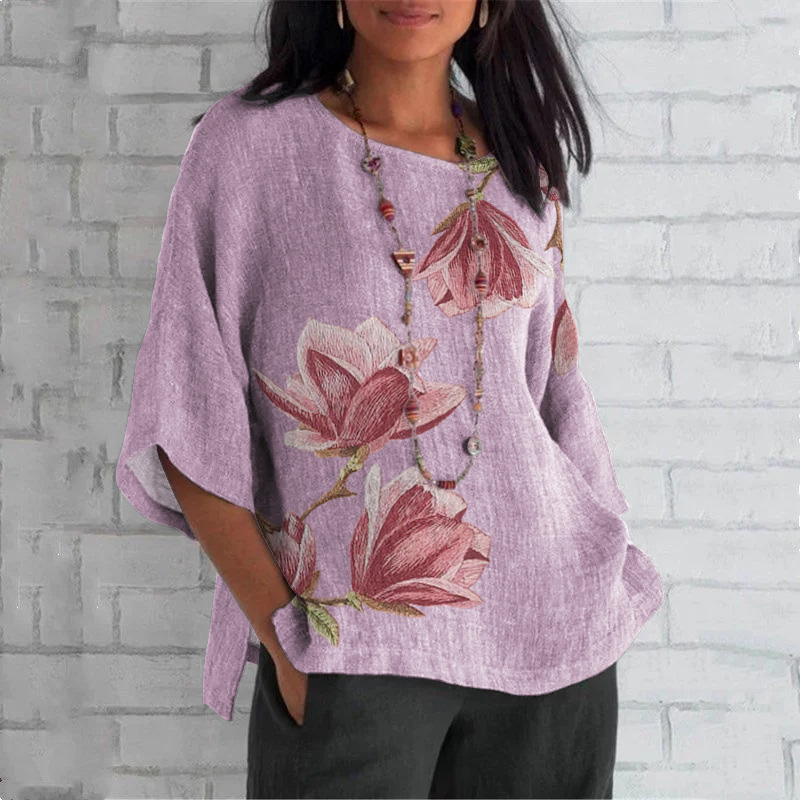 Classy Cherry Blossom Notch Neck Flowy Linen Tunic