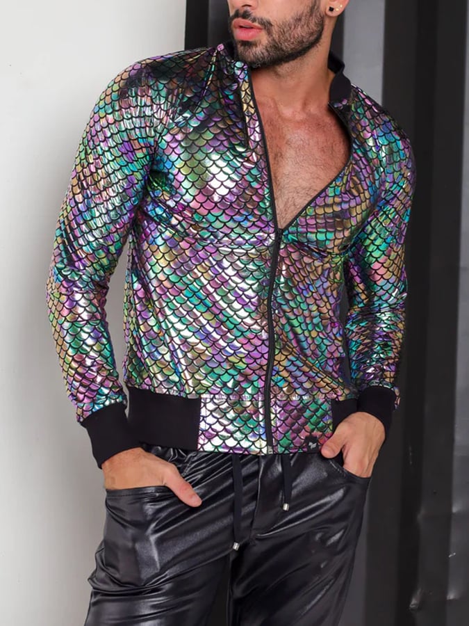 Men'S Stylish Rainbow Fish Scale Pattern Jacket Coat