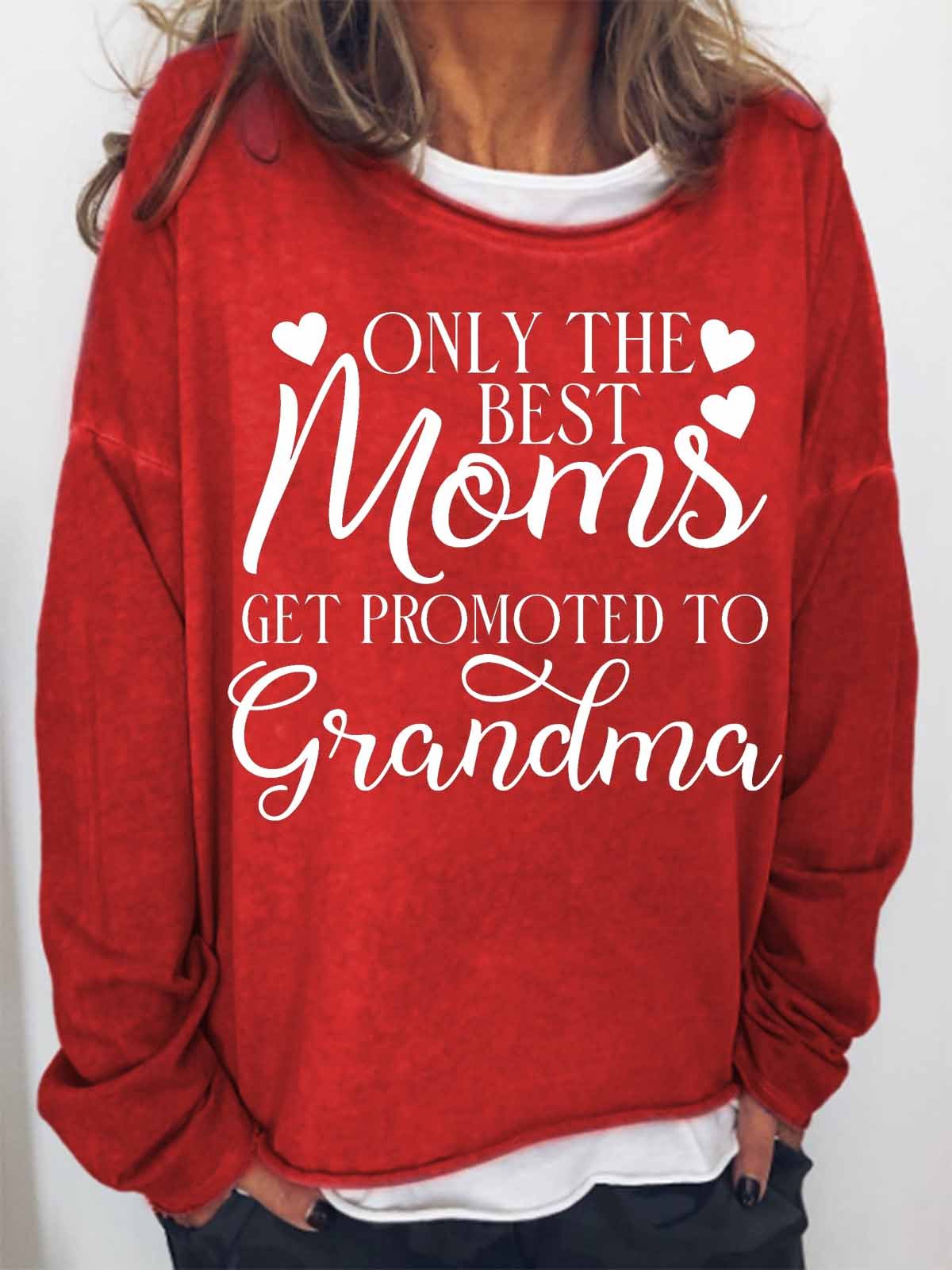 Women's Only The Best Moms Get Promoted To Grandma Crew Neck Text Letters Simple Sweatshirt