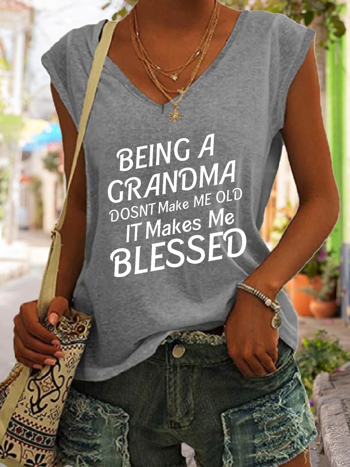 Blessed Grandma Funny Saying V-neck Tank Top