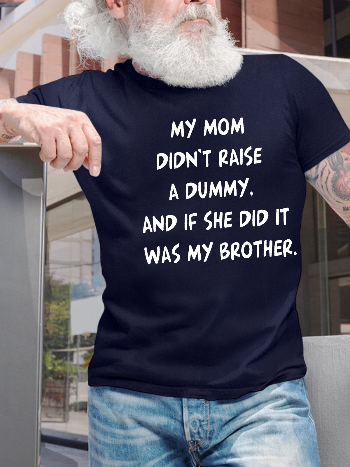 Men’s My Mom Didn’t Raise A Dummy And If She Did It Was My Brother Casual Crew Neck T-Shirt