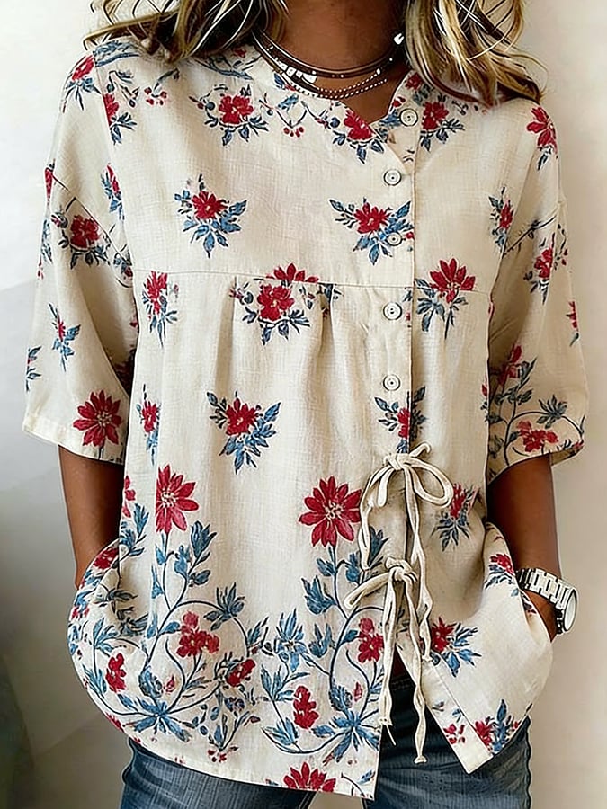 Women's Cotton-Linen Top With 250th Anniversary Botanical Floral Digital Print