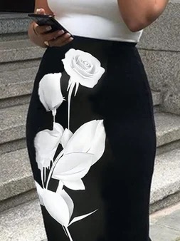 Bodycon Long Sleeves Flower Print High Neck Midi Dresses