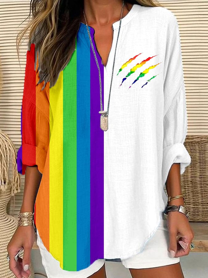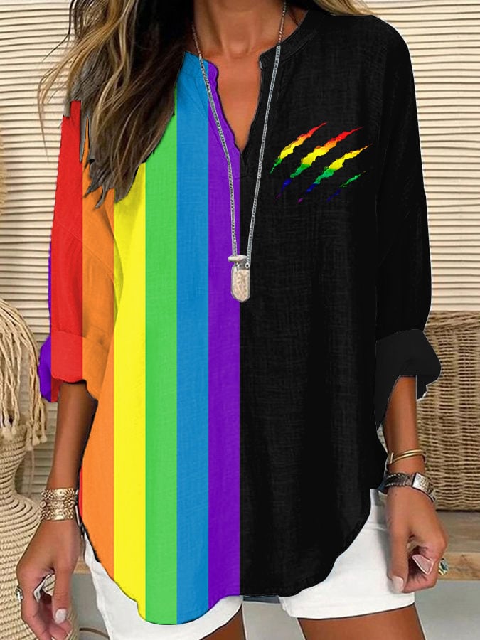 Women's Vintage Pride Month Print Casual Long Sleeve V Neck Shirt