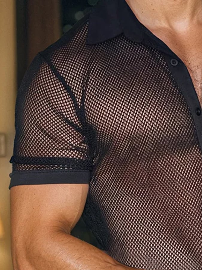 Men's Fashionable Casual Breathable Mesh See-Through Long-Sleeved Shirt