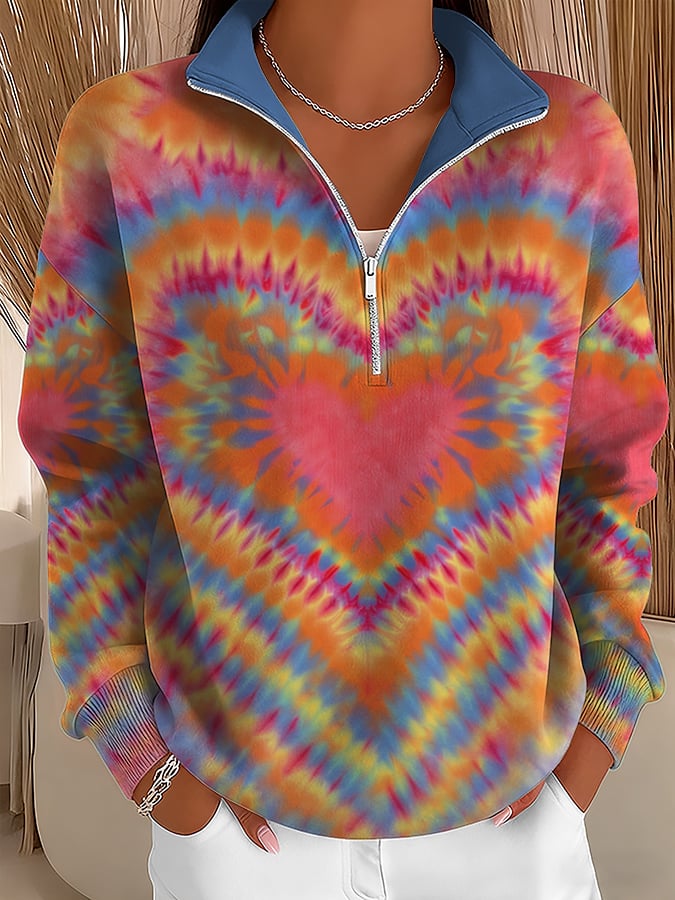 Women's Casual Retro Heart Tie-Dye Zipper Sweatshirt