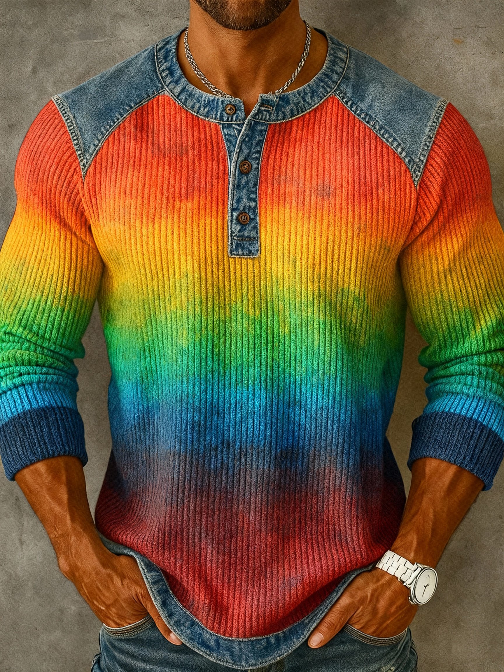 Men's Vintage Rainbow Art Print Long Sleeve Shirt