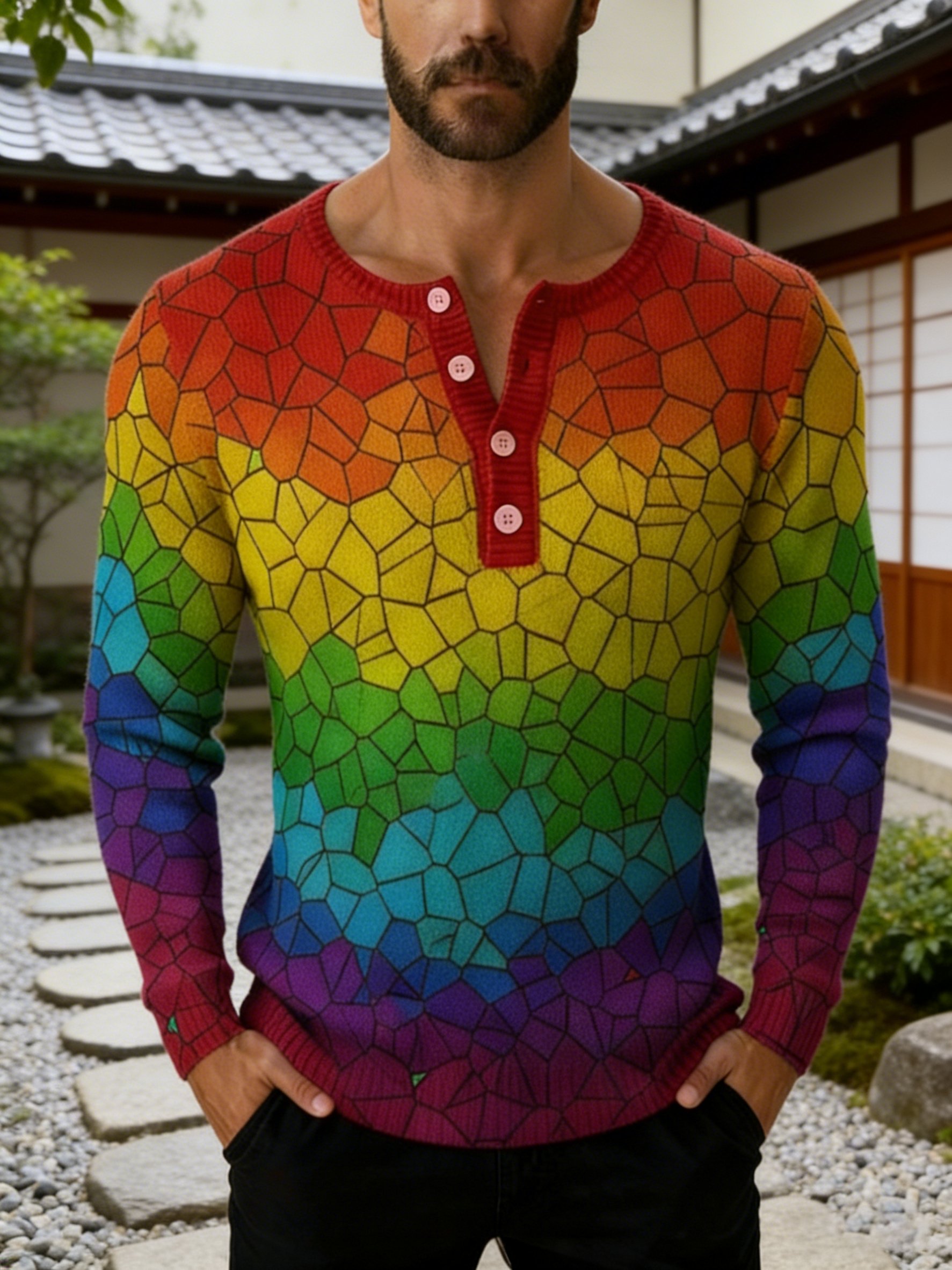 Men's Retro LGBT Print Casual Long-Sleeved Top