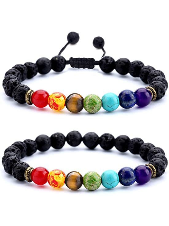 Rainbow Volcanic Stone Turquoise Tiger Eye Yoga Woven Bracelet