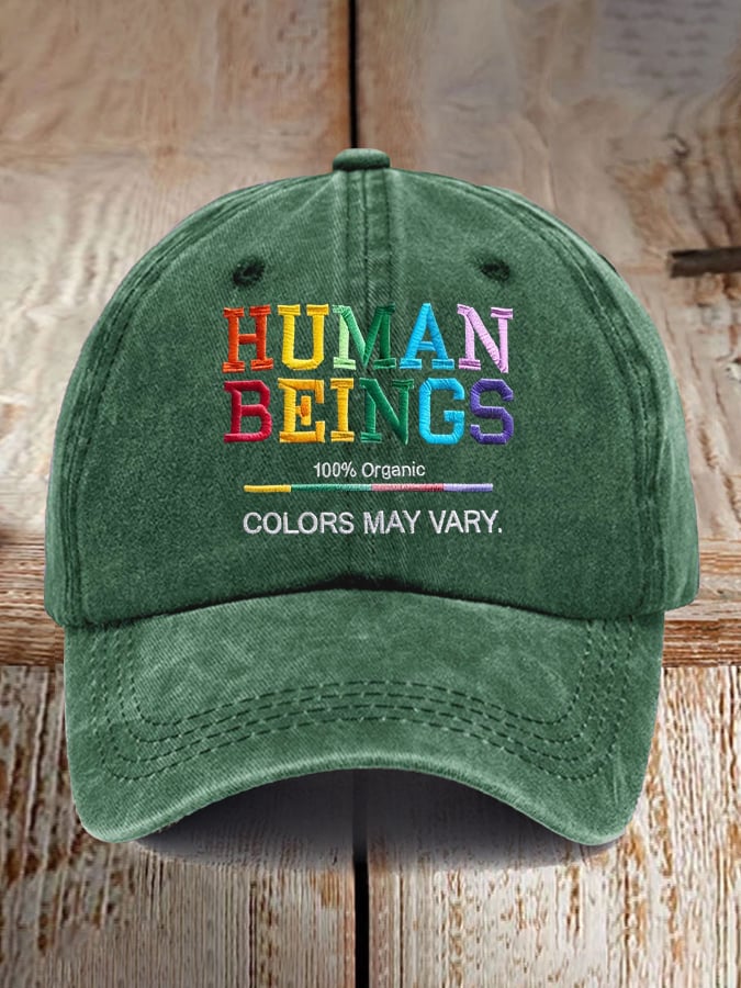 Retro Human Beings 100% Organic Colors May Vary Human Rights Equality Pride Print Baseball Cap