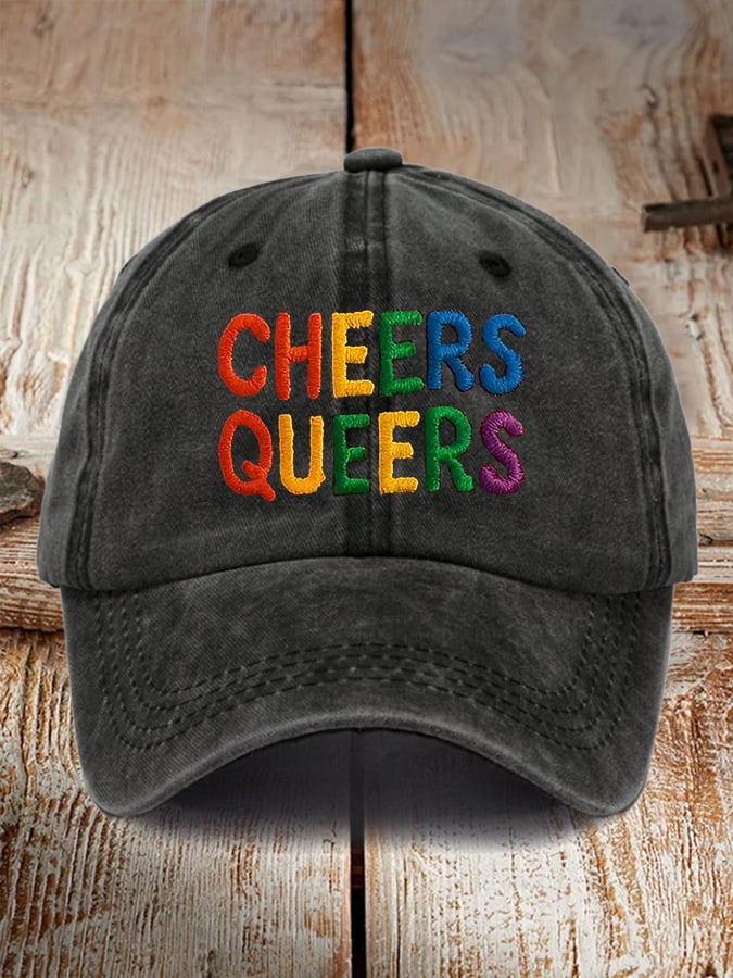 Retro LGBTQ+ Pride Cheers Queers Print Baseball Cap