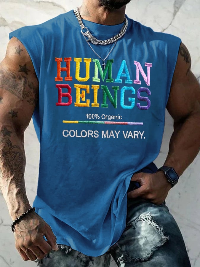 Retro Human Beings 100% Organic Colors May Vary Human Rights Equality Pride Print Tops Tank