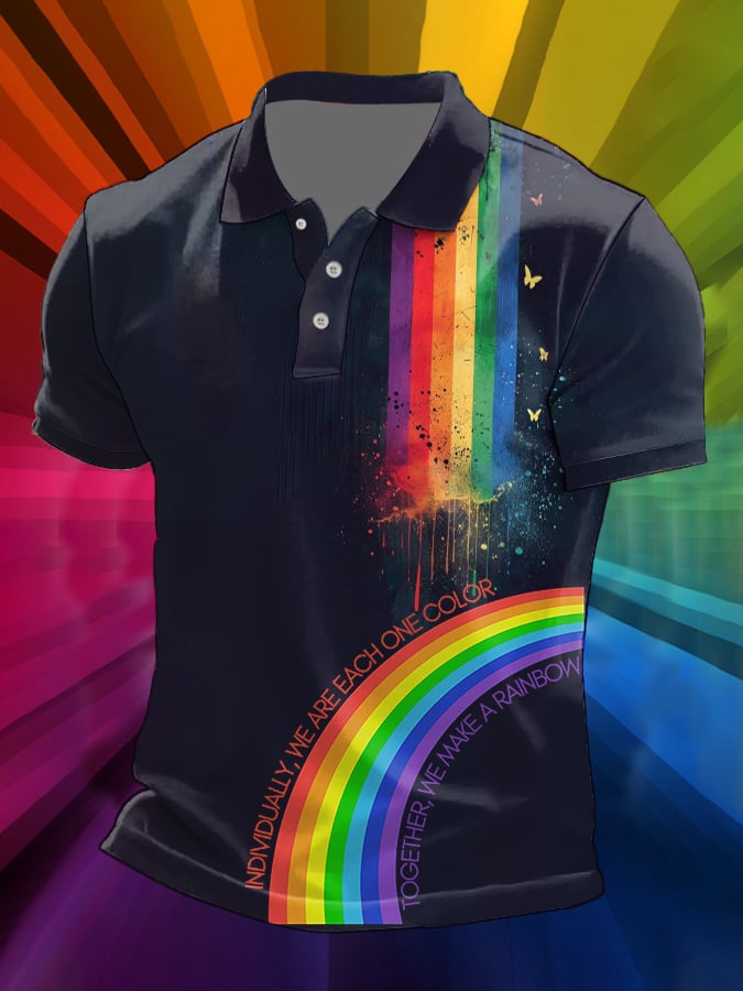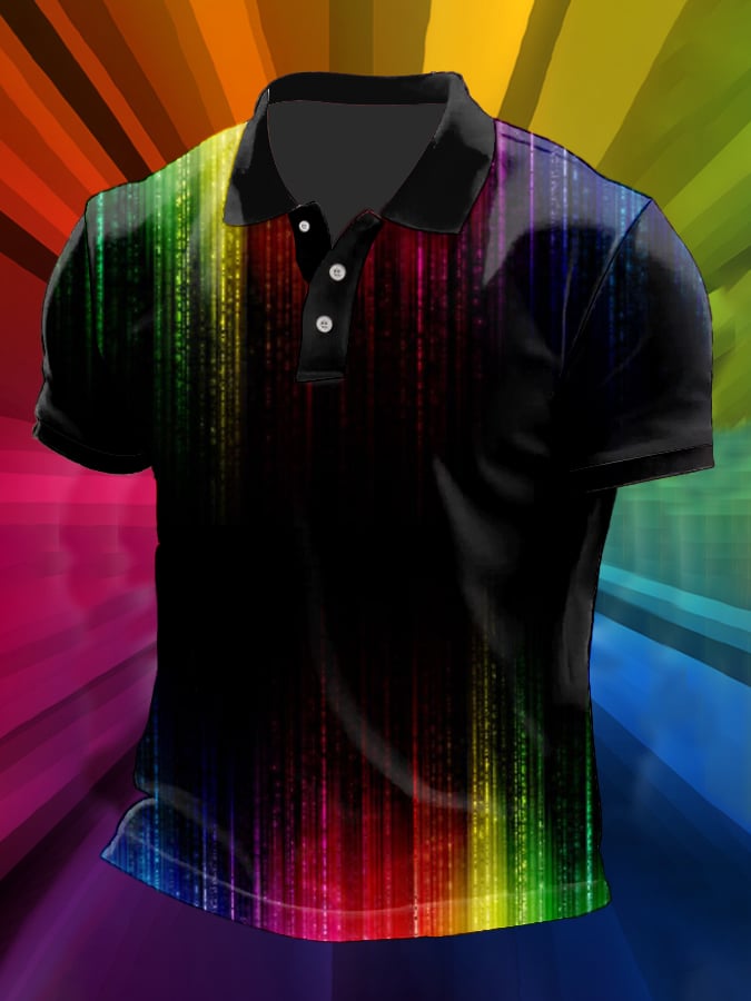 Mens Casual LGBT Pride Month Rainbow Print POLO Shirt