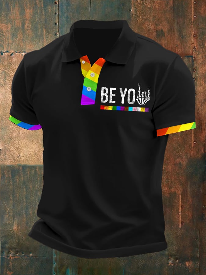 Man's Be You Rainbow Pride Stripes Printed POLO Shirt