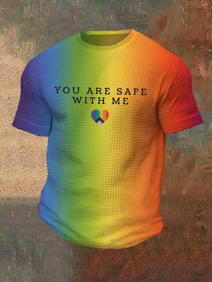 Men's You Are Safe With Me Print Casual Waffle T-Shirt
