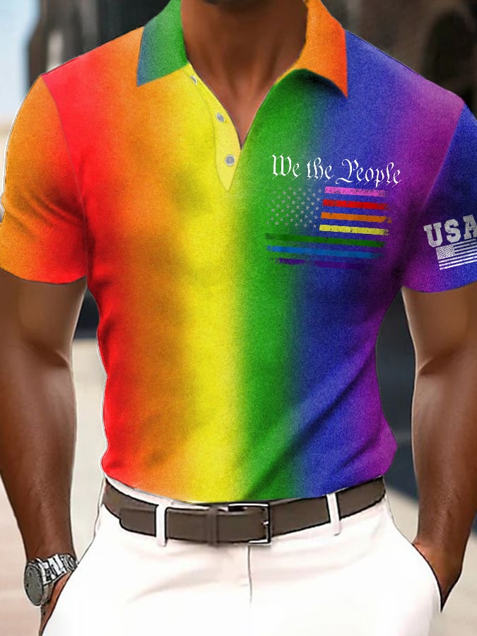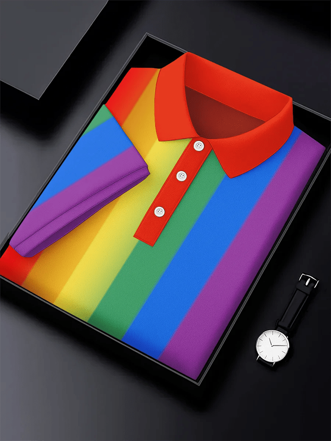 Men's Casual Gay Month Rainbow Print Polo Shirt
