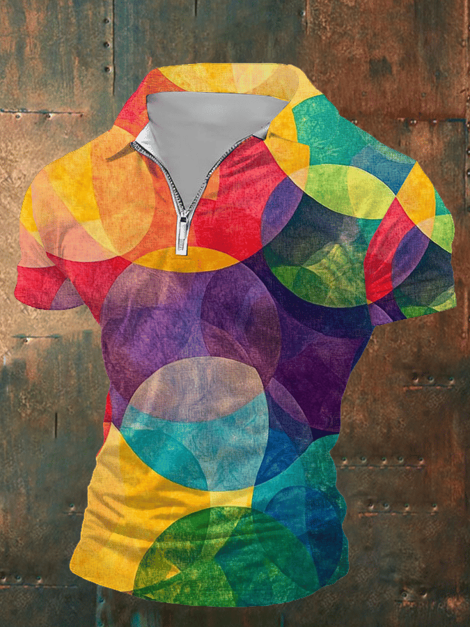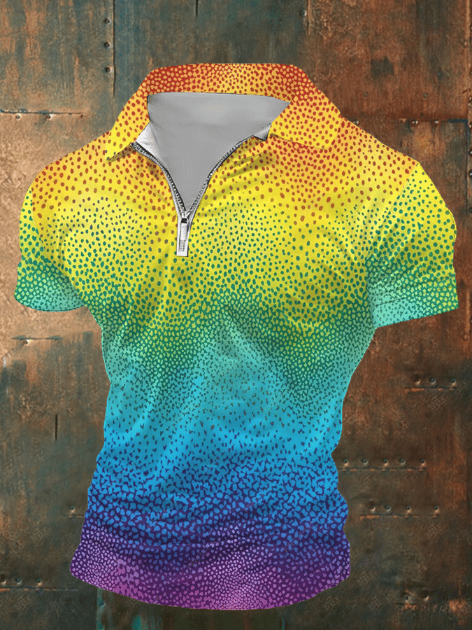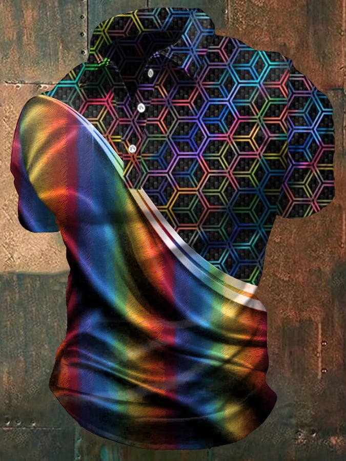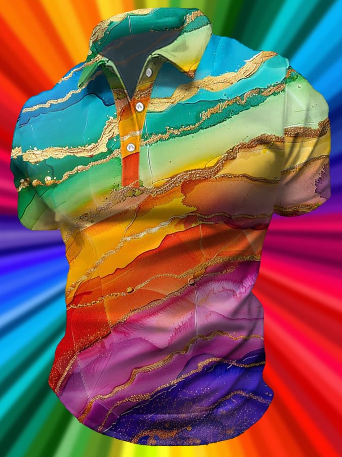 Men's Rainbow Art Design Printed Casual Polo Shirt