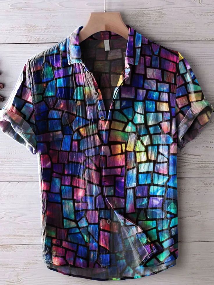 Men's Pride Month Retro Colorful Geometric Print Short Sleeve Shirt
